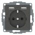 Exxact 1-vägsuttag från Schneider Electrics med 2 x USB laddning 2,4A Typ A, jordat, snabbanslutning, inkl klor, petskyddat för infälld montering i apparatdosa c/c 60mm. För utanpåliggande montage används dosa 35mm. Kompletteras med valfri Exxact-ram.