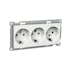 Exxact 3-vägsuttag från Schneider Electrics, jordat, skruvanslutning, petskyddat för infälld montering i apparatdosa c/c 60mm. För utanpåliggande montage används dosa 35mm. Kompletteras med valfri Exxact-ram.