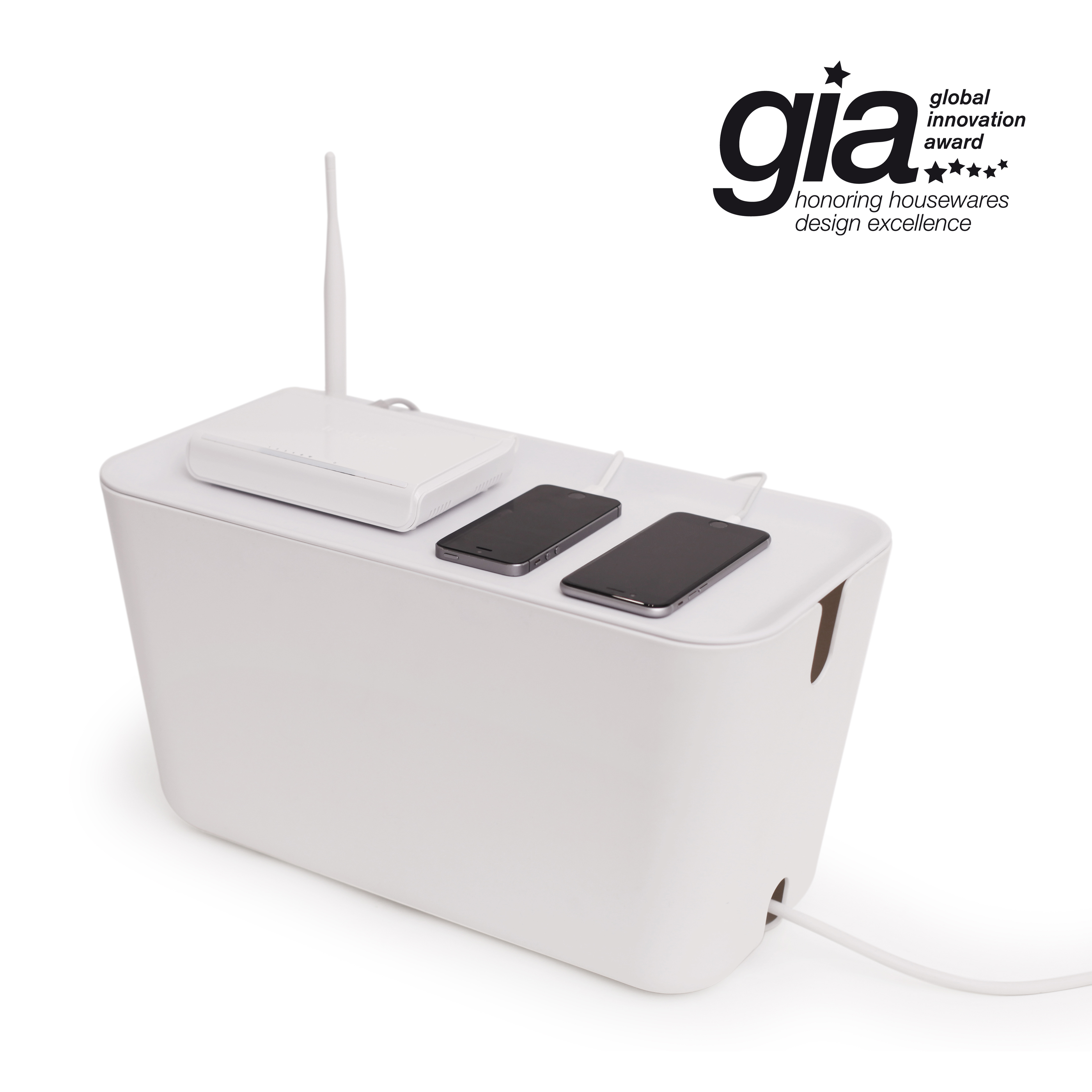 Cable Box XXL samlar inte bara sladdar utan ger även god plats för elektronisk utrustning såsom routers och Wifi-stationer.