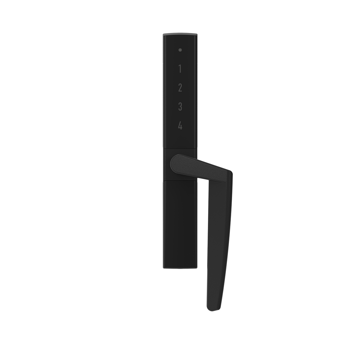 Handtaget drivs av 2 st AAA batterier (Ingår EJ). Lås och lås upp från, genom appen. Även från utsidan. Låsning kan även göras via svajpning av touchpanelen och upplåsning sker med sexsiffrig kod. Omprogrammering görs enkelt via bakgrundsupplysta touchpanelen.