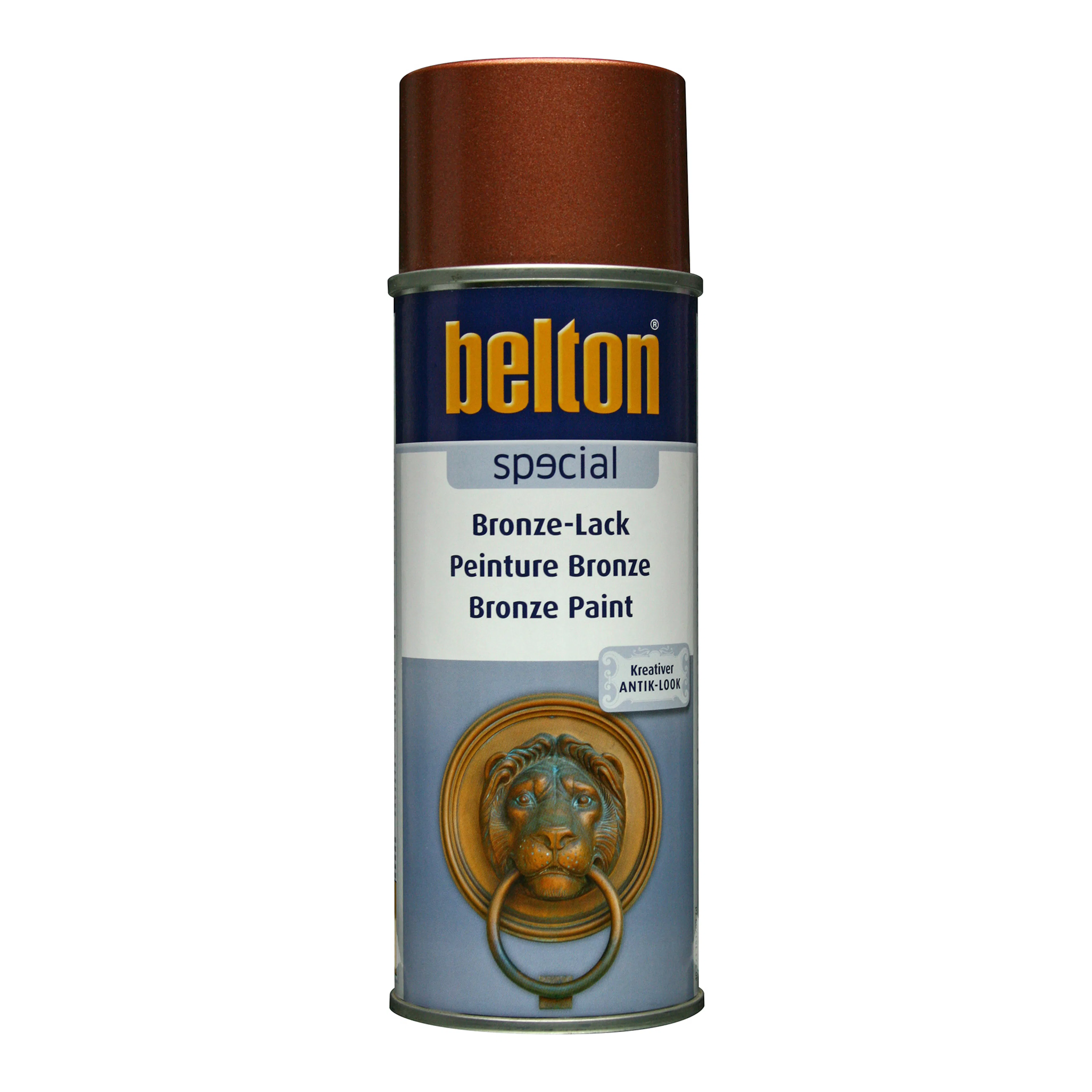 Sprayfärg från Belton med bronseffekt som är lätt att arbeta med, har hög täthet och är mycket dryg. Den är även reptålig och väderbeständig. Kan användas på metall, trä, keramik, sten, lera, glas, papper och vissa plastmaterial. Fri från freon (CFC) och tungmetaller (inget bly, kadmium eller krom).