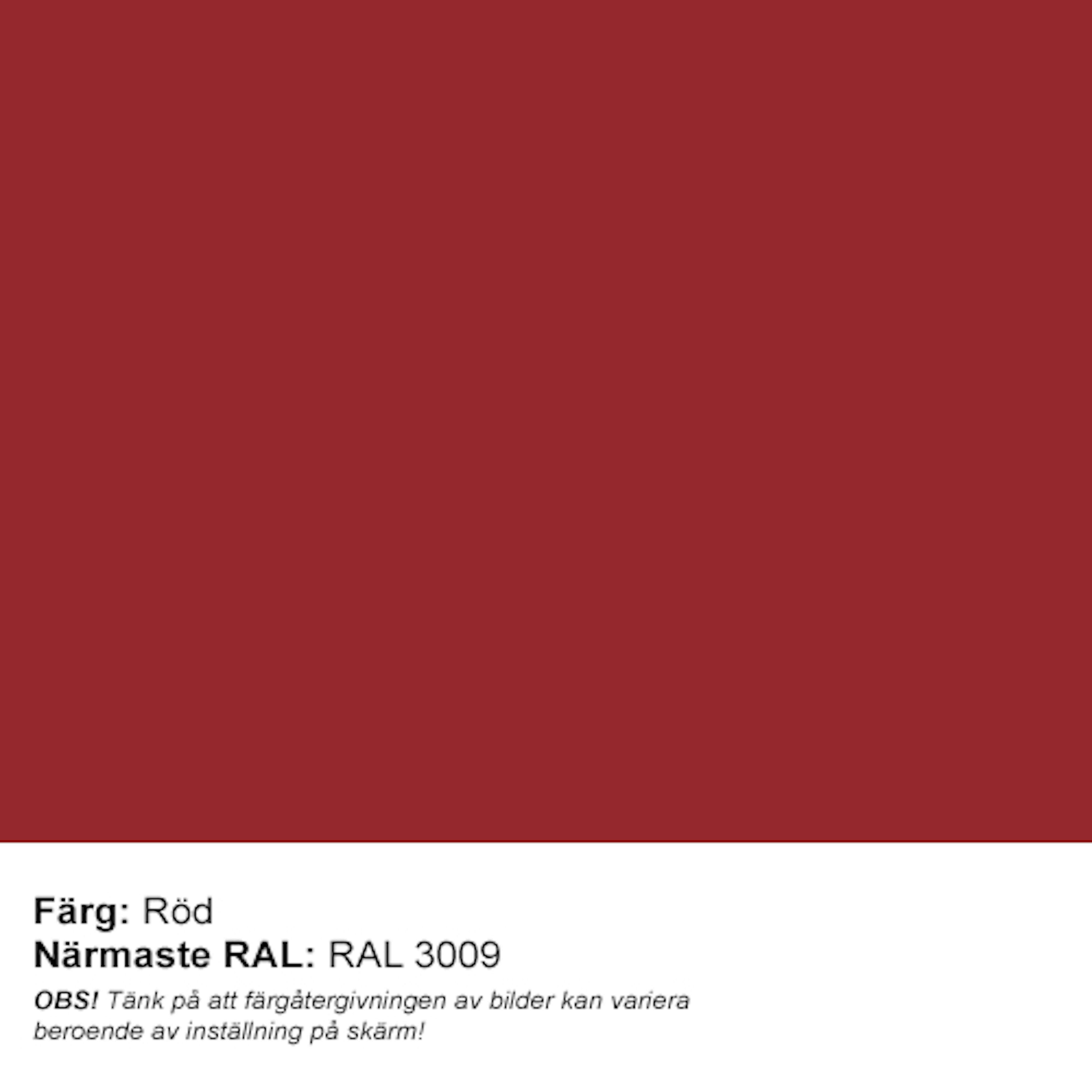 | Färg | Aluzink, Brun, Grå, Mörk Silver, Röd, Silvermetallic, Svart, Tegelröd, Vit |