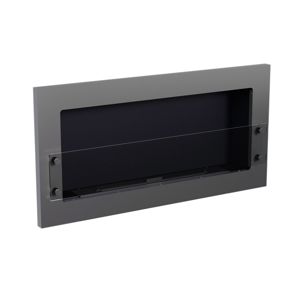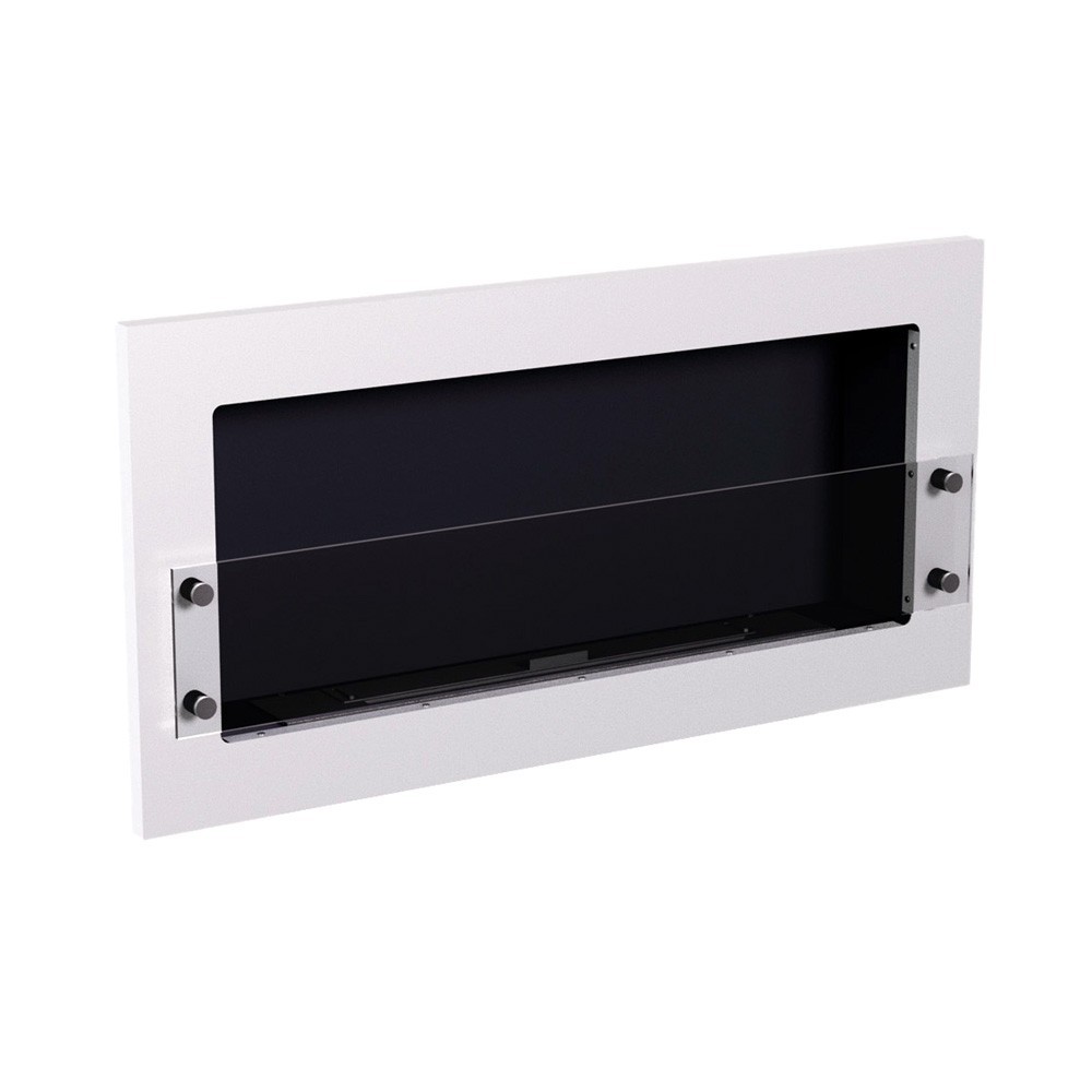 Här får du en smal bioetanolkamin som är vägghängd med ett stort säkerhetsglas framför lågorna. Kaminen är utrustad med manuella smala brandkar som ger vackra lågor som enkelt kan justeras i storlek med hjälp av det medföljande justeringsverktyget. Den medföljande smala brännaren har en kapacitet på 1,5 liter och kan brinna i cirka 2 timmar per fyllning.