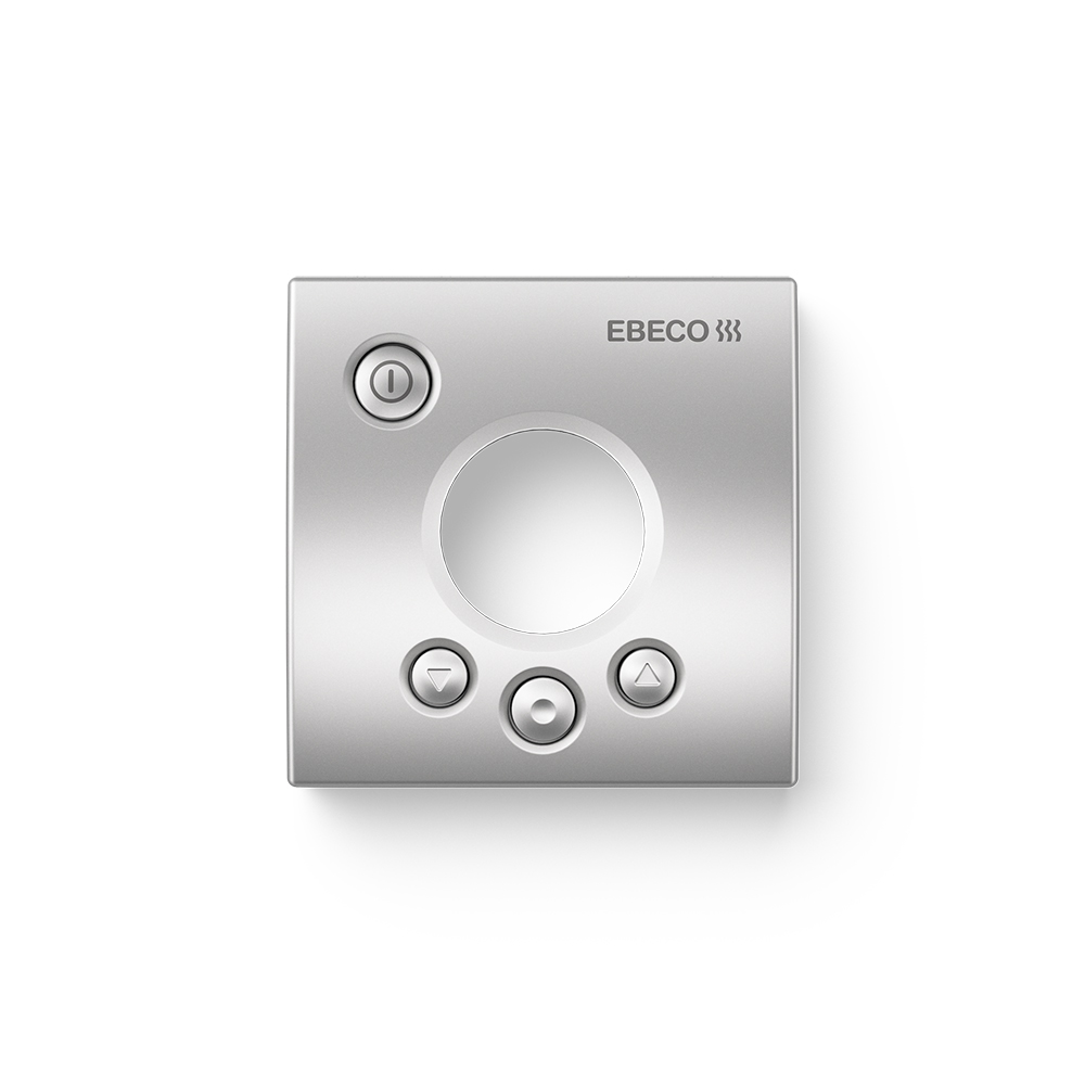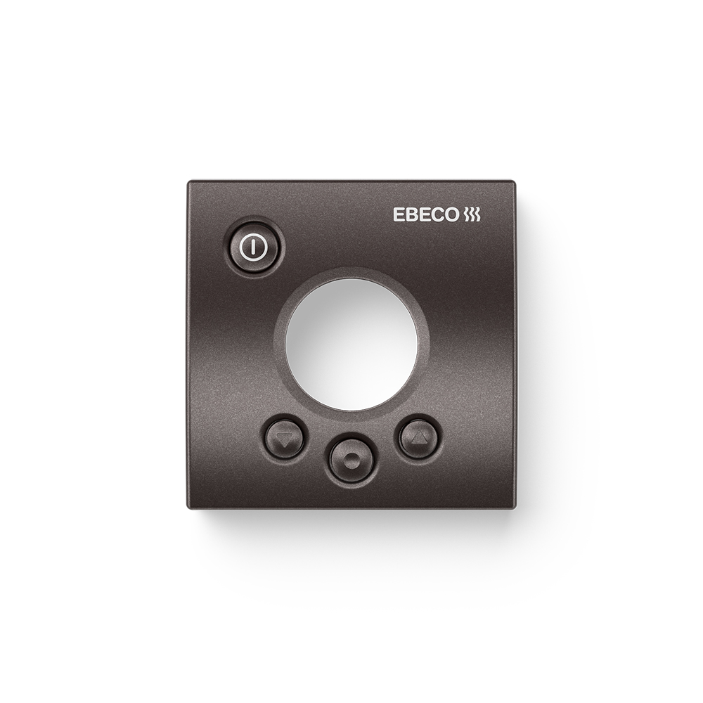 Täckfront Ebeco Termostat EB-Therm är en utbytbar front som passar i ramsystemen Schneider Exxact i färgerna Antracit och Metallic, ELKO Plus/RS i färgerna Alu och Black samt ELJO Trend.