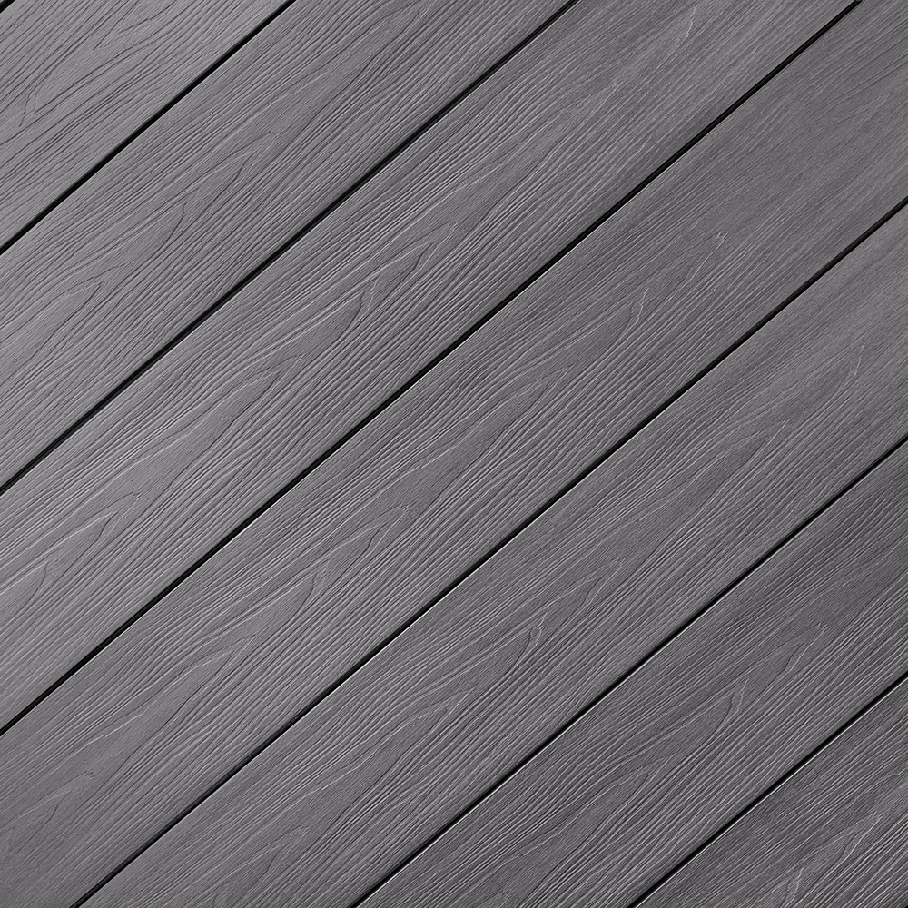 GOP Woodlon Grande är en exklusiv solid träkomposit med en bredd och färg som ger ditt utegolv en rustik look som påminner om gamla brädgolv. Den strukturerade ytan har en naturtrogen trästruktur i slitstark polymer 360 grader som kapslar in brädan och gör golvet motståndskraftigt mot fläckar och skandinaviskt klimat.