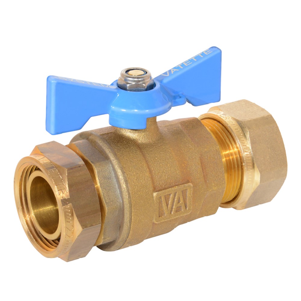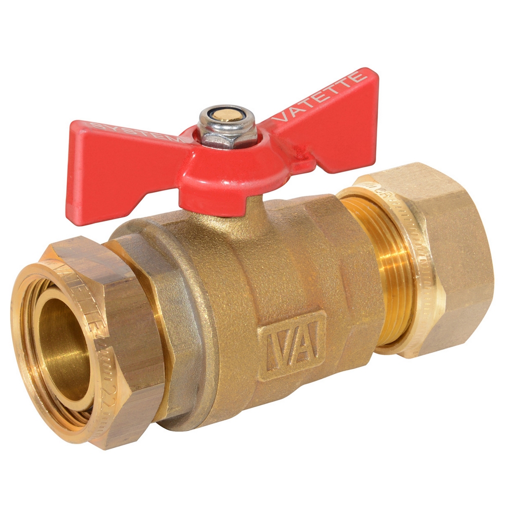Kulventil 22xG20 Rak Löp från Vatette är en kulventil som ansluts mot Vatette Dy 22 mm koppling med 22 mm klämring i andra ändan. Denna ventil är i rakt utförande och ett färgat vred. Den passar t.ex. som avstängninsventil till Vatette fördelare med Dy 22 mm anslutning.
