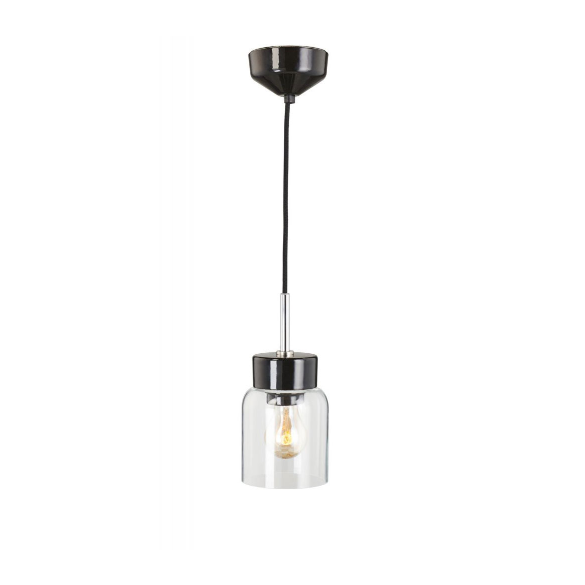 Tova har en dekorativ rak kupa i klarglas som både omger ljuskällan och framhäver den på ett mycket fint vis. Lampans sockel matchar snyggt med både textilkabeln och takplattan. Ett förslag är att placera fler lampor av samma sort i en rad eller i ett kluster, för att belysa en större yta och ge ett smyckande intryck till rummet. Det är även snyggt att kombinera denna varianten med andra lampor i serien Smycka.