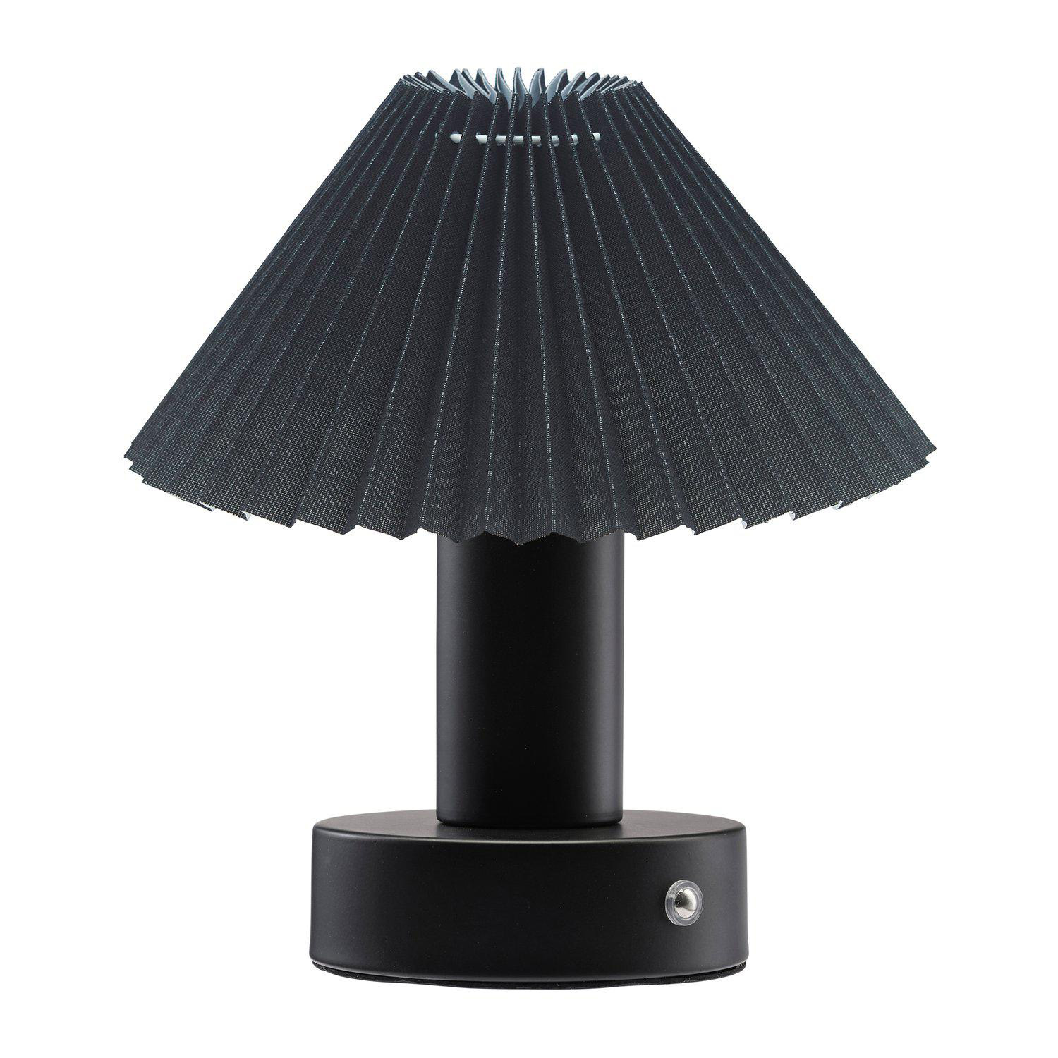 Stommen är gjord i lackerad metall. Lampskärmen är i linne.Lampan drivs av ett litiumjon batteri som är uppladdningsbart via USB C uttag. Laddkabeln (1 m) ingår. Ljuskällan är inte utbytbar. Ljusflödet varieras 20-40 lumen. Det tar ca 6 timmar för lampan att laddas upp från noll batterinivå. Vid svagast ljusnivå kan lampan vara tänd upptill 8 timmar. Tänd eller släck lampan genom att hålla i ON/OFF knappen i 3 sekunder. Färgtemperaturer ställs in med snabbt tryck på samma knapp. Laddningscykler, 400 gånger. Dimension, Φ13 x 24cm.