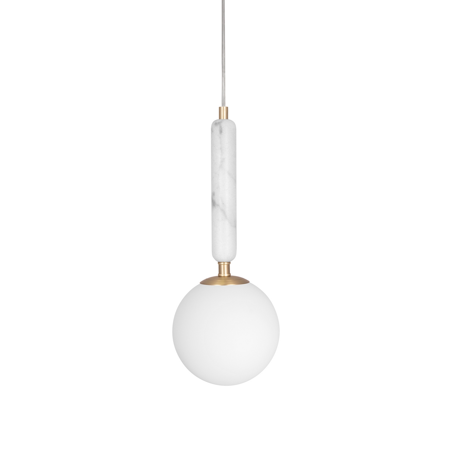 Taklampa Globen Lighting Torrano i vacker solid marmor blir en lyxig inredningsdetalj som verkligen tar plats i rummet. De runda formerna tillsammans med den hårda marmorstenen bildar en spännande kontrast. Denna lampa är gjord i solid marmor, har en glaskupa i vitt opalglas, metalldetaljer samt en 350 cm lång kabel med brytare. Design: Patrik Hall.