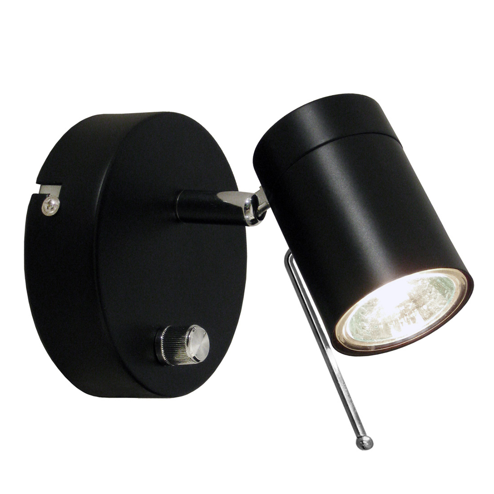 Vägglampa i metall som passar utmärkt som sänglampa. På lamphuvudet sitter en pinne i metall som hjälper dig att flytta ljuset till rätt läge, så att du slipper vidröra själva lampan.