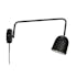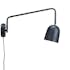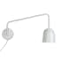 Vägglampa med bra "arm" för läsning. Lampans huvud kan flyttas sidledes och vridas. På-/av-knappen sitter på väggfästet.