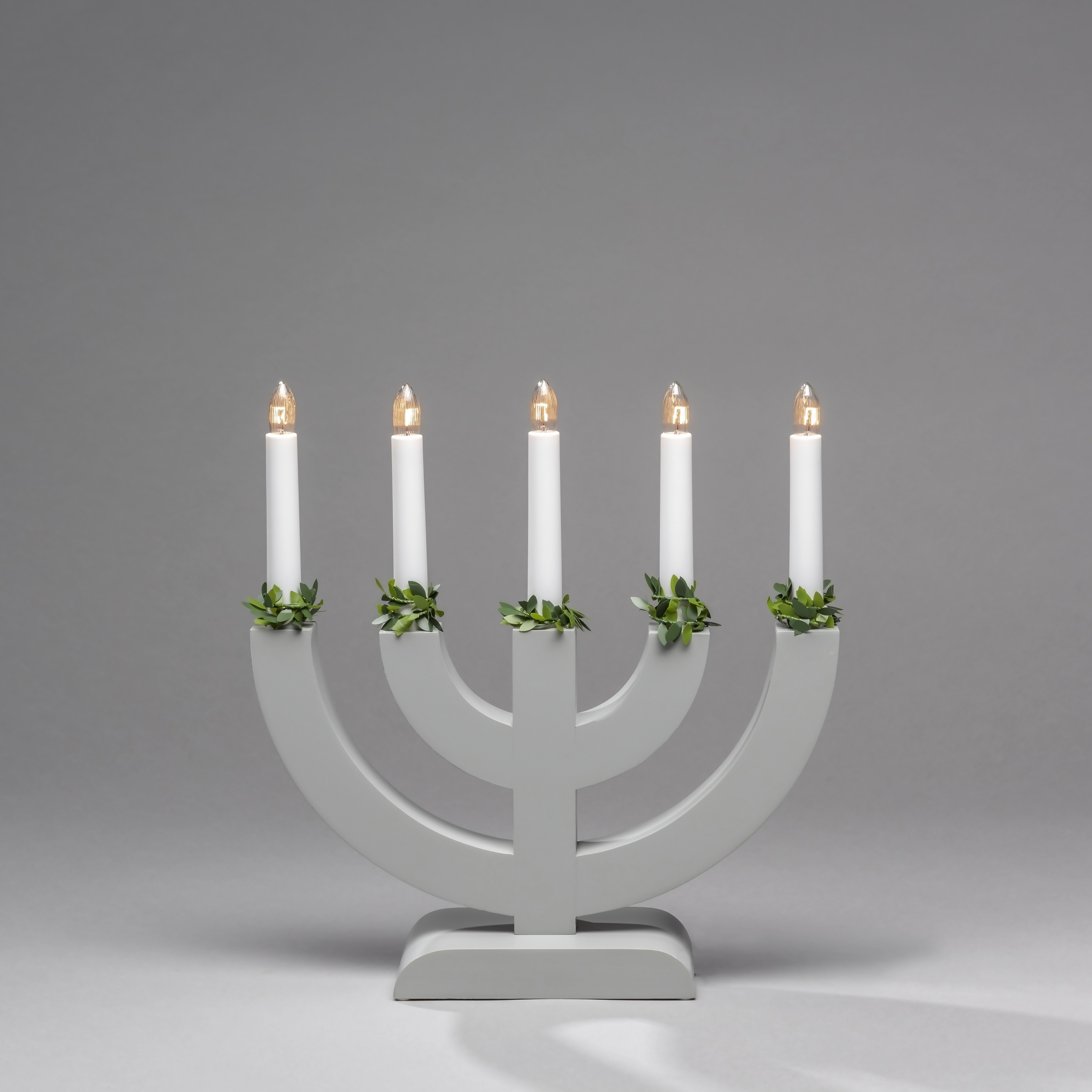Ljusstake från Gnosjö Konstsmide med 5 st ljuskällor och gröna dekorationer.