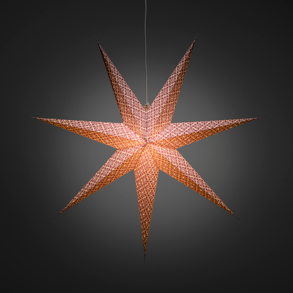 Hängande pappersstjärna från Gnosjö Konstsmide, mått 78x78cm. Inklusive sladdställ och 5 m anslutningssladd.