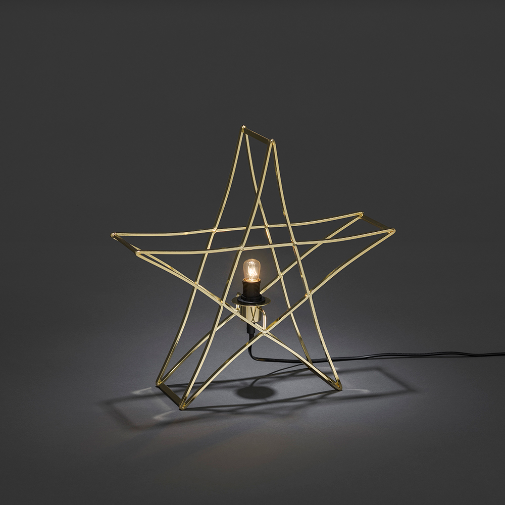 Stående metallstjärna från Gnosjö Konstsmide, mått 40x40cm. Anslutningssladden är en 5 m lång E14 svart kabel.