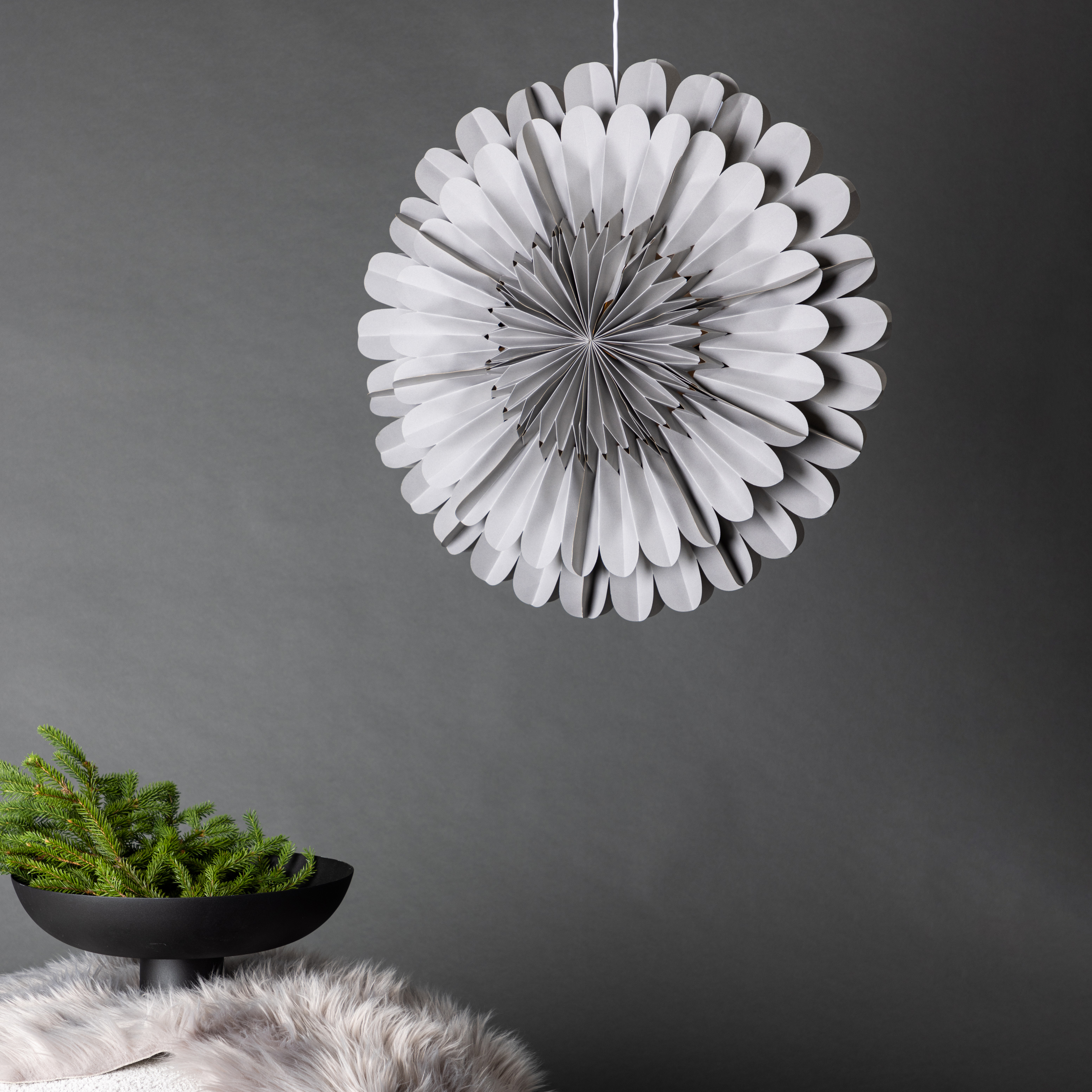 Lampan hänger i en vit sladd som diskret smälter in mot väggen och ger ett stilrent uttryck, så att fokus verkligen hamnar på den underbara stjärnan. Oavsett om det är under höstens mörka dagar eller under julens högtidliga stämning, kommer pappersstjärnan Järvsön att skapa en underbar atmosfär som får dig att känna dig omfamnad av värme och lugn.