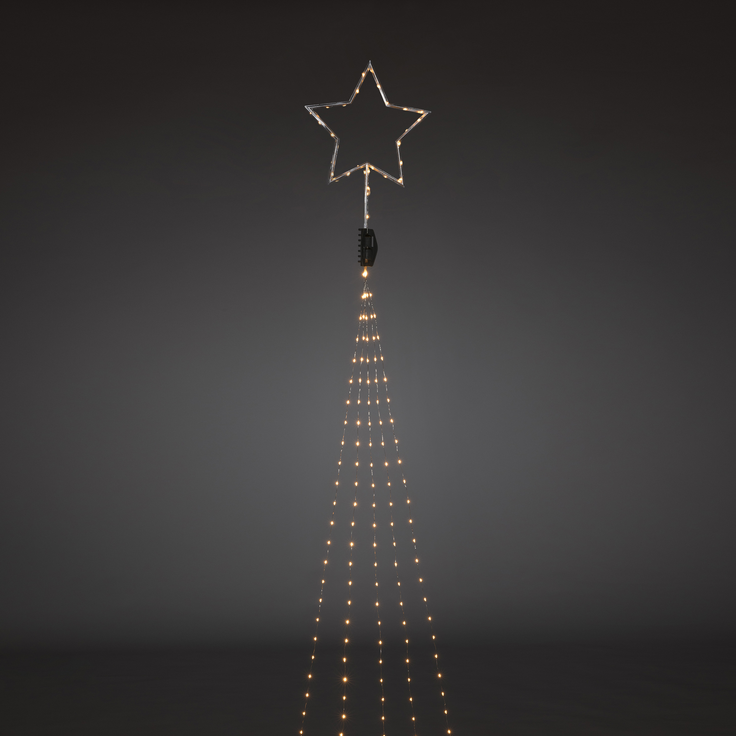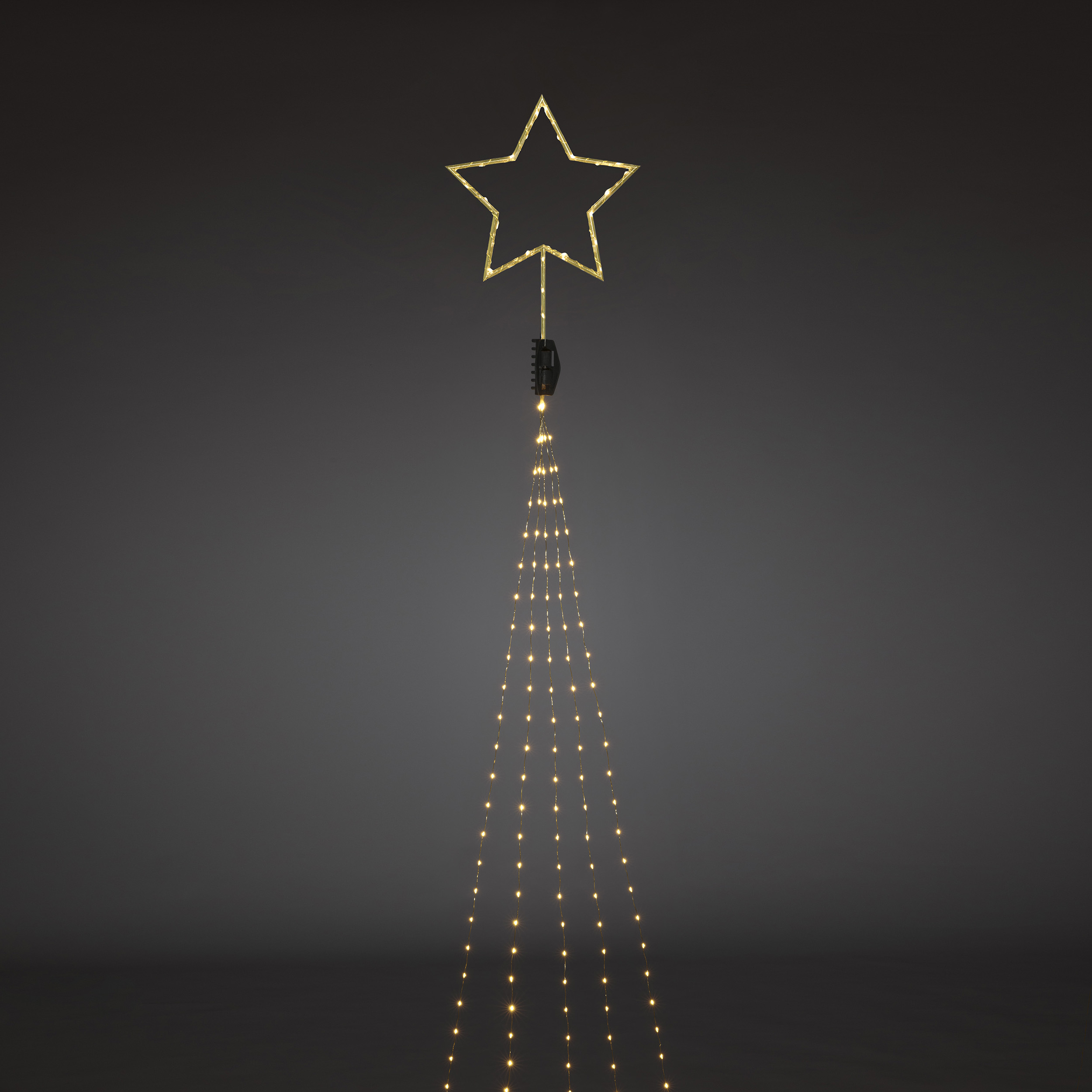 Julgransslinga från Gnosjö Konstsmide, komplett med toppstjärna. Belysningen består av fem st slingor med 274 st amberfärgade LED-ljus.