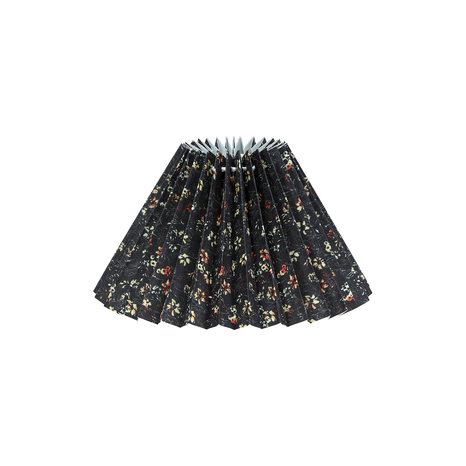 Ines veckad lampskärm från PR Home. Formen är lätt utställd och har en vit insida som ger ett vackert sken när lampan är tänd. E27 ringfäste som sitter 5cm från botten. Det smarta vändbara ringfästet gör att skärmen kan användas både till lampfötter och takupphäng eller läslampor.