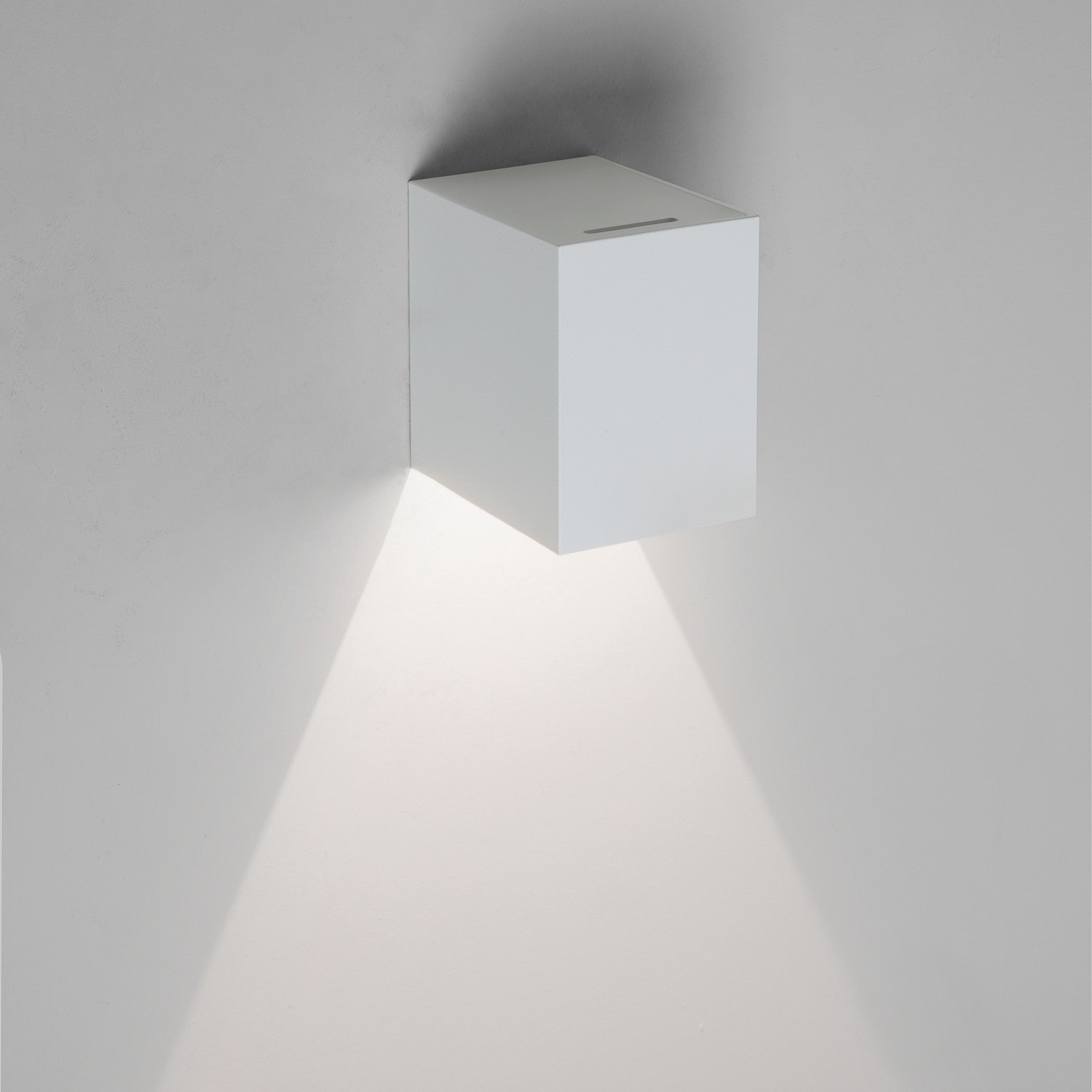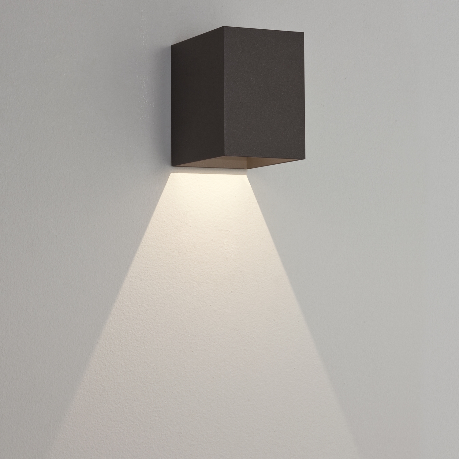 Fasadbelysning Astro Oslo Single 100 är en elegant väggbelysning för utomhusbruk. Denna fyrkantiga lampa har belysning nedåt vilket skapar ett vackert ljusspel på väggen.