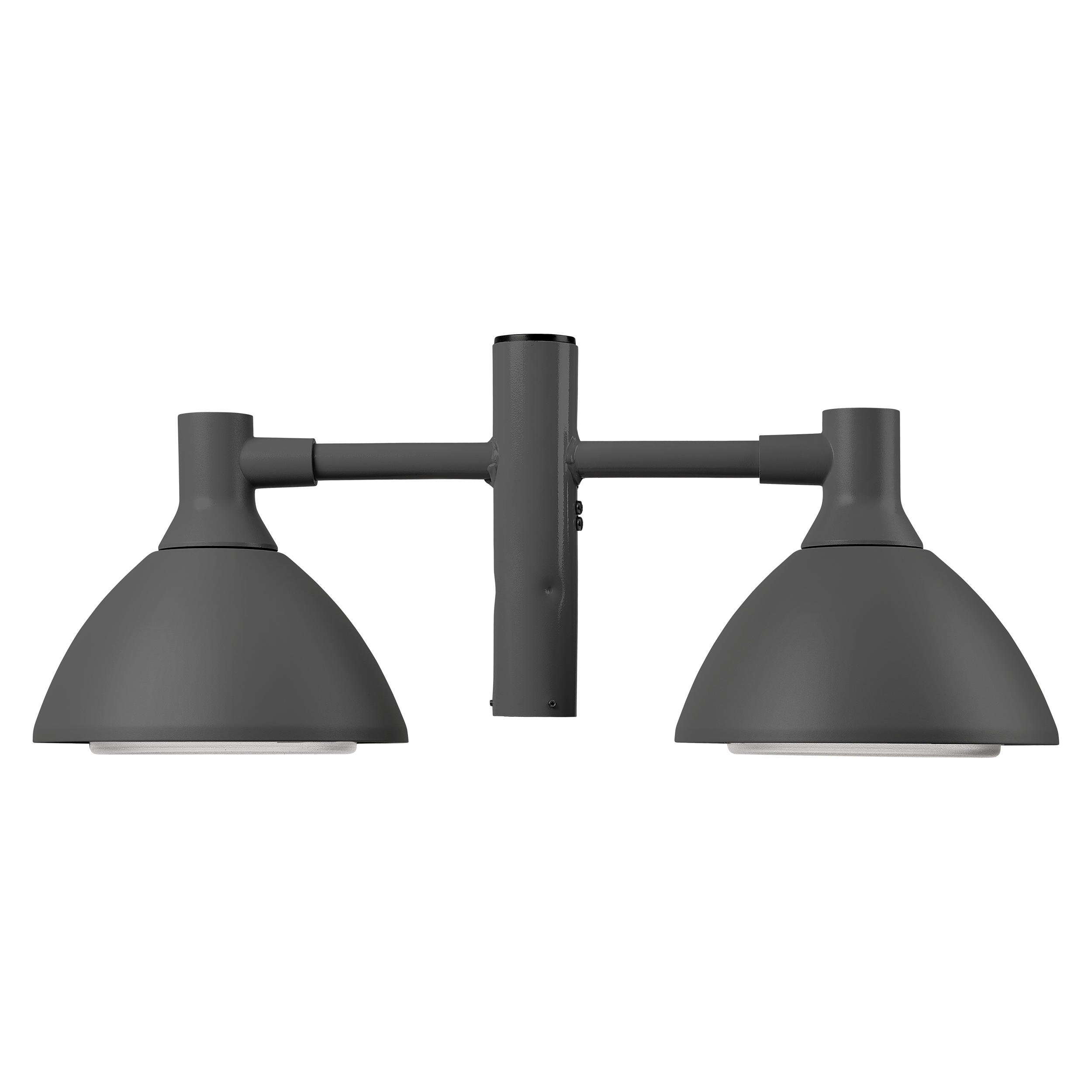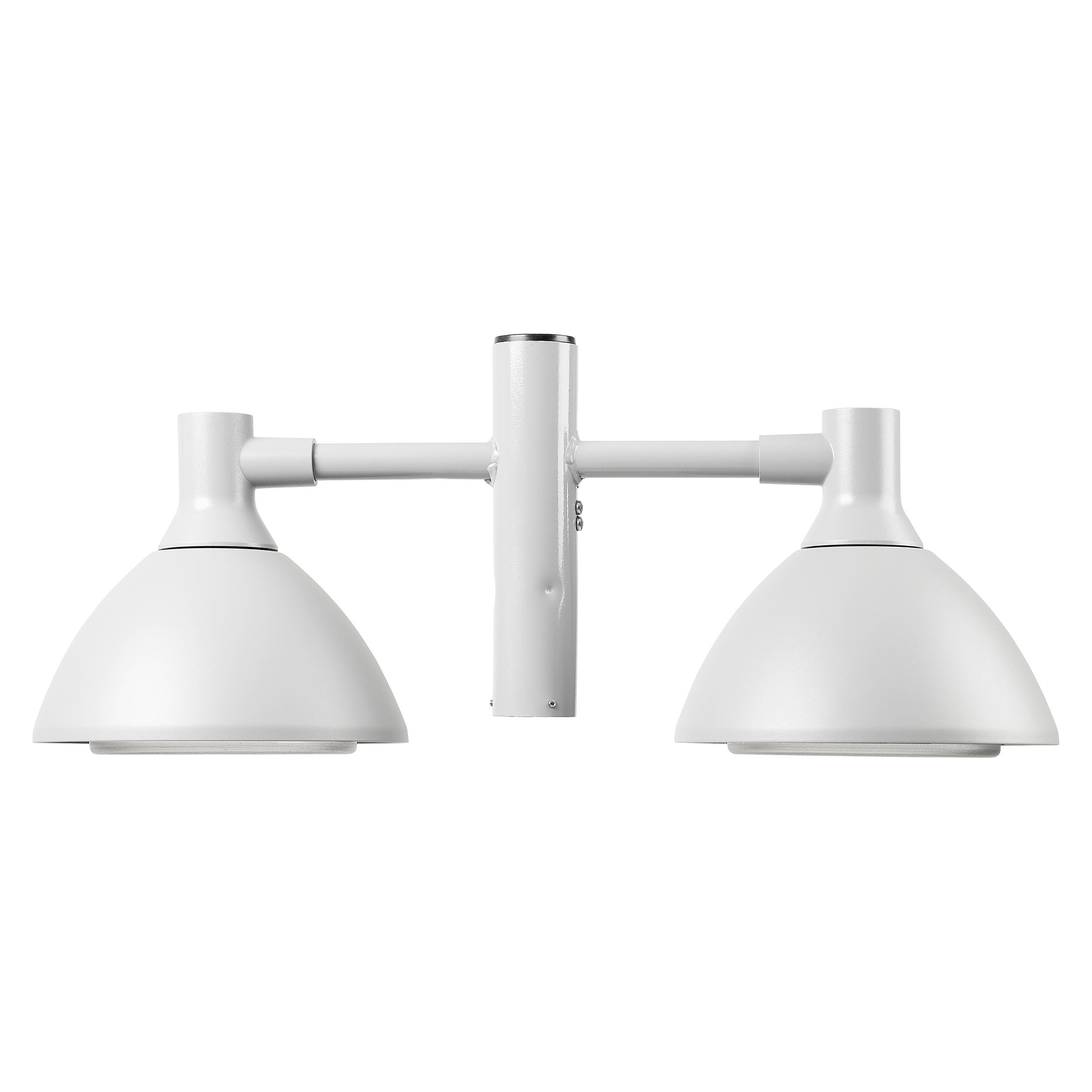Ark Mini stolparmatur med två armar från Westal som har avbländat nedljus. Anpassad för stolptopp 60 mm med kabelavlastning och snabbkopplingsplint 3x2x2,5 mm². Tillverkad i kromaterad och pulverlackerad stomme med bländskydd i PET-G. Passar för bruk både i privat och offentlig miljö.