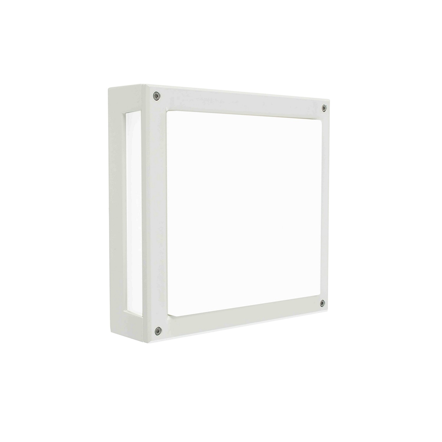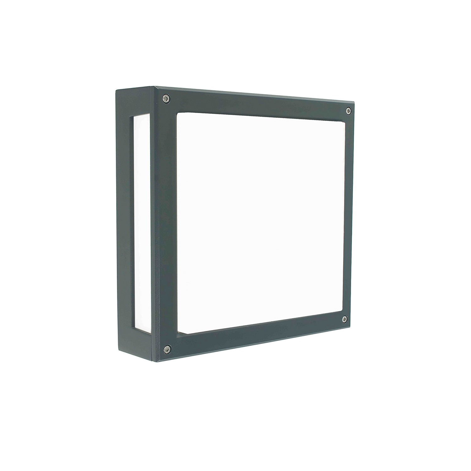 Modern väggarmatur i gjutet aluminium. Ljuskälla avskärmas med opalvit polykarbonat. Passar även för takmontage. Finns med dimning, ställbart rörelse- och skymningsrelä (typ 5040).