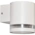 Cylinderformad fasadbelysning i elegant design tillverkad i aluminium, med täckglas. Dekorring i frostad polykarbonat. Väggarmaturen sprider ljuset nedåt och den transparanta ringen ger en extra dimension till ljuset. Belysningen passar både på privata fastigheter och i offentlig miljö.