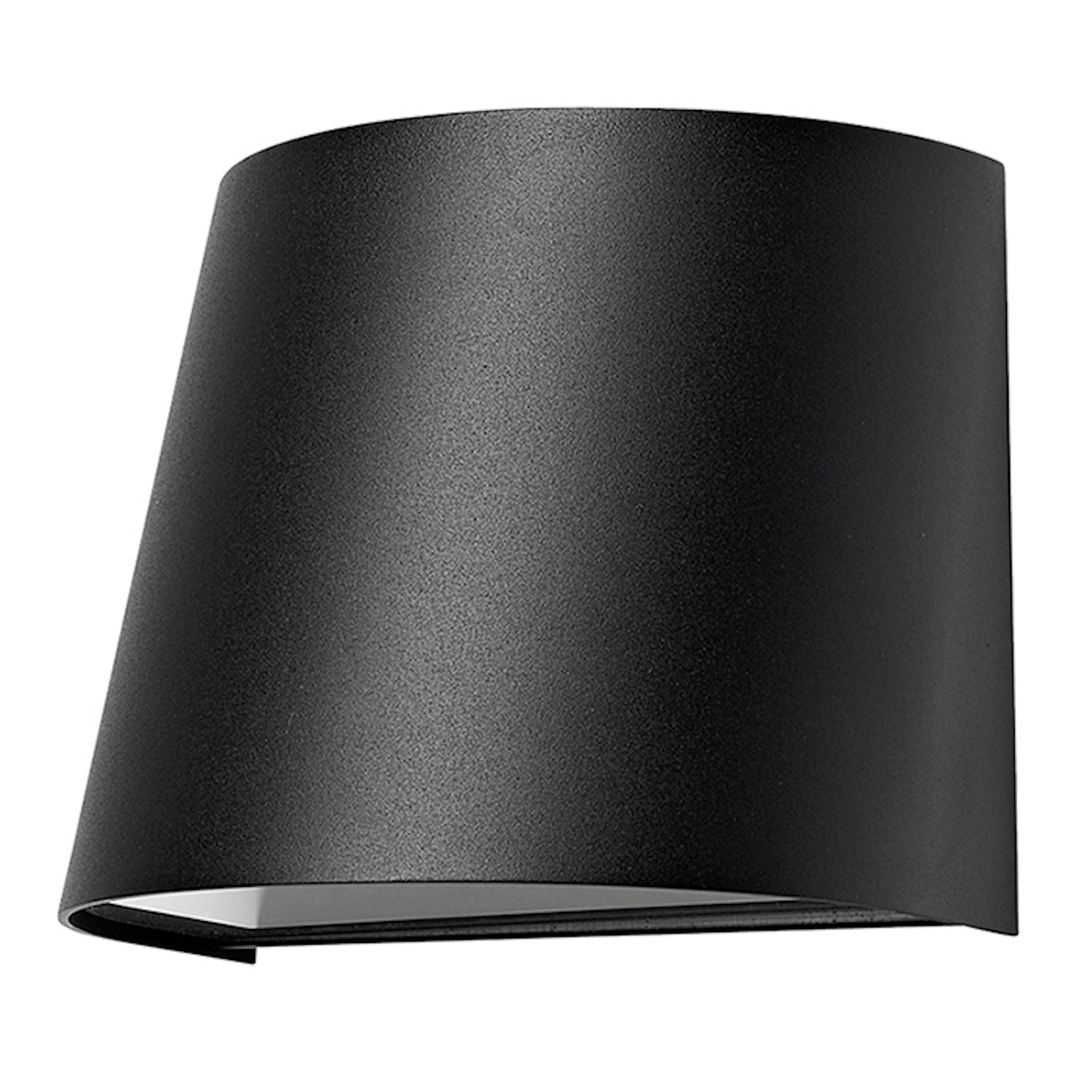 Väggarmatur med avbländat nedljus. Anodiserad och pulverlackerad stomme i aluminium, bländskydd i PET-G. Armaturen är bestyckad med LED-enheten Philips Fortimo Disk 800lm. Färgtemperaturen är varmvit (3000K) med en ljusbild som lyser ned. Bakstycket har två in- och utgångar samt snabbkopplingsplint. Avsedd för utomhusbruk (IP44) och passar för bruk både i privat och offentlig miljö.