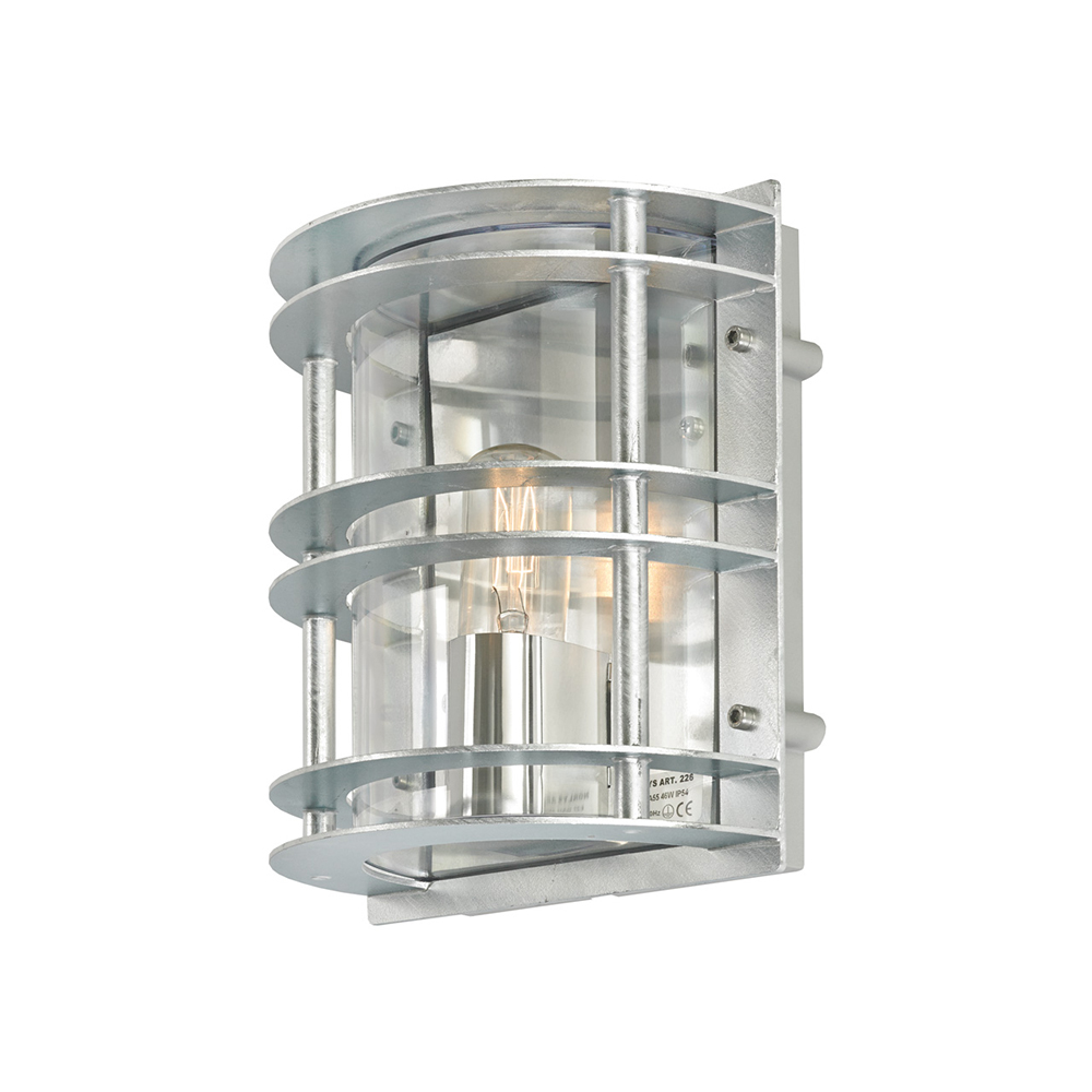 Väggarmatur i galvaniserad eller lackerad stål. Monteras dikt på vägg. Opalvit eller klar polykarbonat. Finns både med E27 sockel eller LED-modul