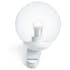 Vägglampa Steinel L 585 är en sensorlampa från Steinel i klassisk tidlös design som bara tänder ljuset  när det behövs. Sensorn tänder lampan då någon kommer in i bevakningsområdet, räckvidd max 12 meter och bevakningsvinkel 180°. Sensorlampan har en lampkupa av klarglas.