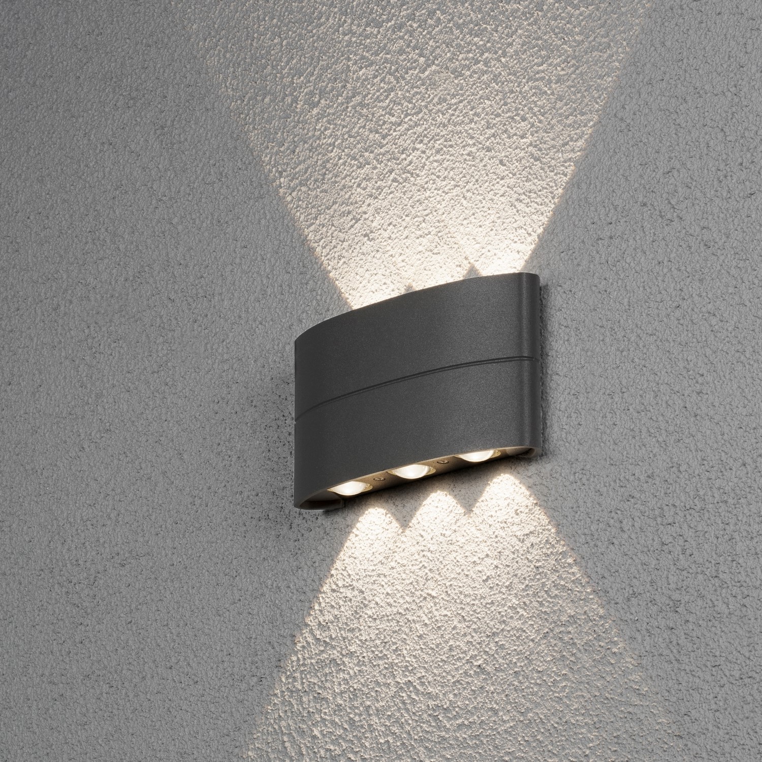 Vägglykta Gnosjö Konstsmide Chieri 8W LED är en stilren fasadbelysning som lyser både uppåt och nedåt vilket skapar vackra skuggor på väggen. Den levereras med LED-belysning.