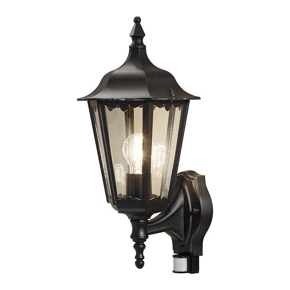 Vägglykta Gnosjö Konstsmide Firenze Upp E27 Rörelsevakt är en elegant fasadbelysning i form av en klassisk lykta med rörelsevakt. Den har klart glas och levereras utan ljuskälla.