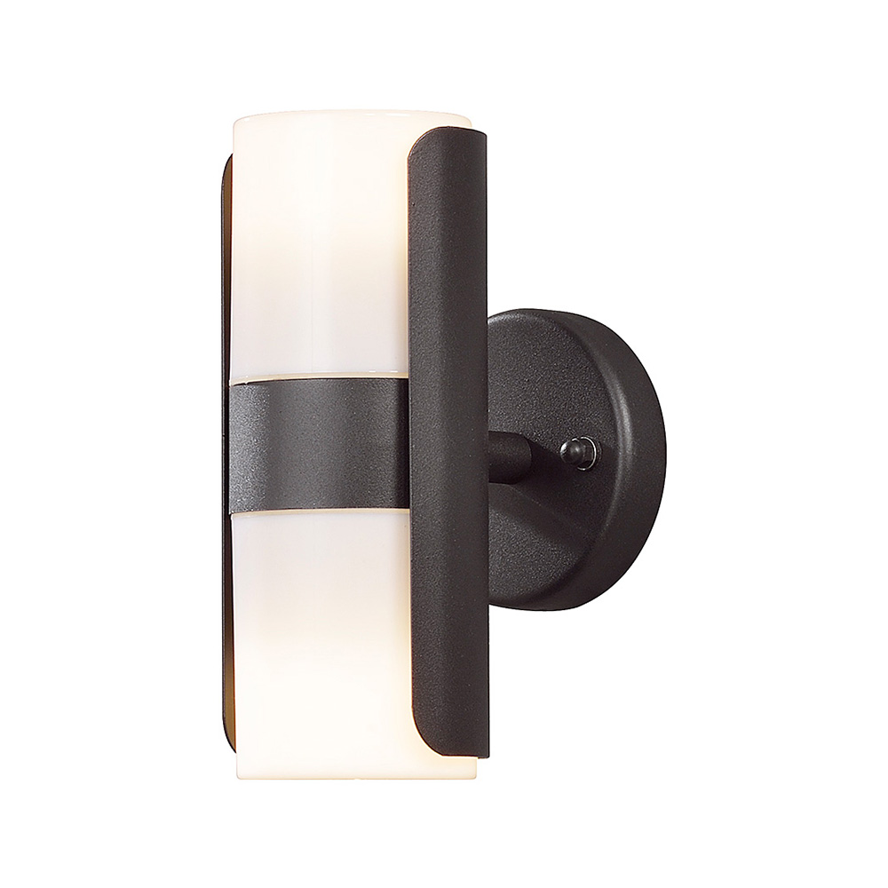 Vägglykta Gnosjö Konstsmide Modena 2 Upp/Ned GU10 är en modern fasadbelysning som har opalfärgat klarglas och lyser både uppåt och nedåt. Den levereras utan ljuskällor.