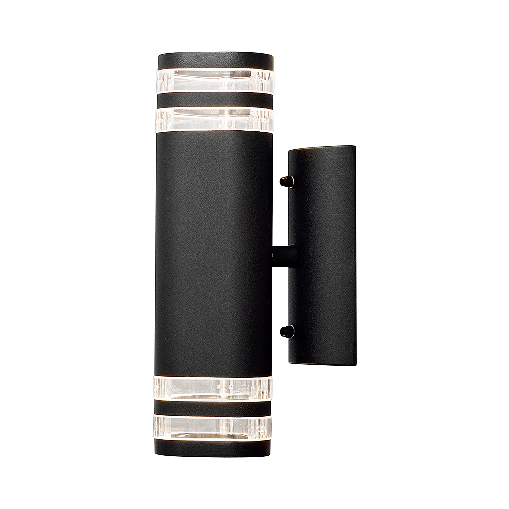 Vägglykta Gnosjö Konstsmide Modena 3 Upp/Ned GU10 är en modern fasadbelysning som har en kupa i klarglas och plastglas. Den lyser både uppåt och nedåt och levereras utan ljuskällor.