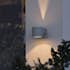 Vägglykta Gnosjö Konstsmide Modena Rund G9 Grå är en modern fasadbelysning som ger vackra skuggor på väggen. Den levereras utan ljuskälla.