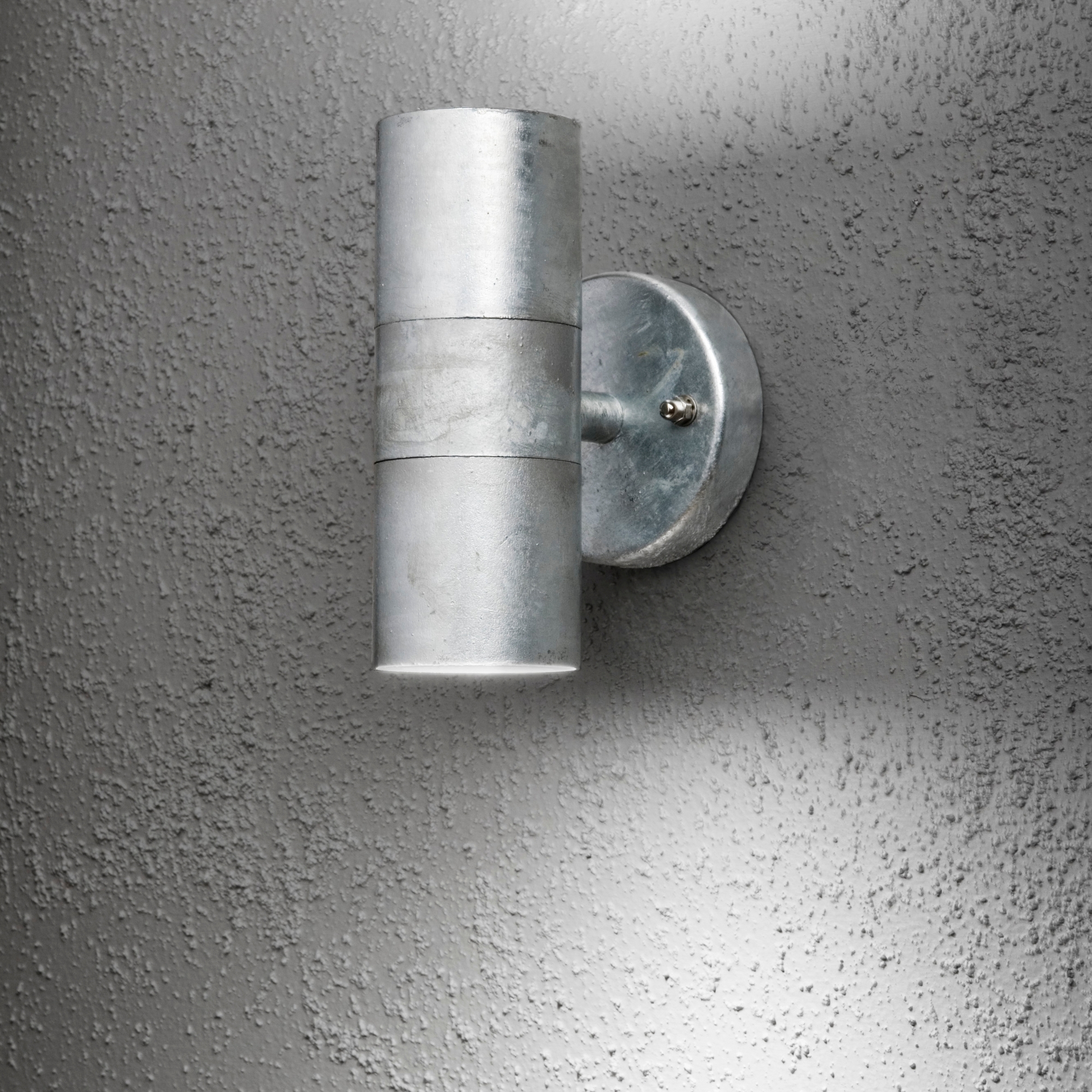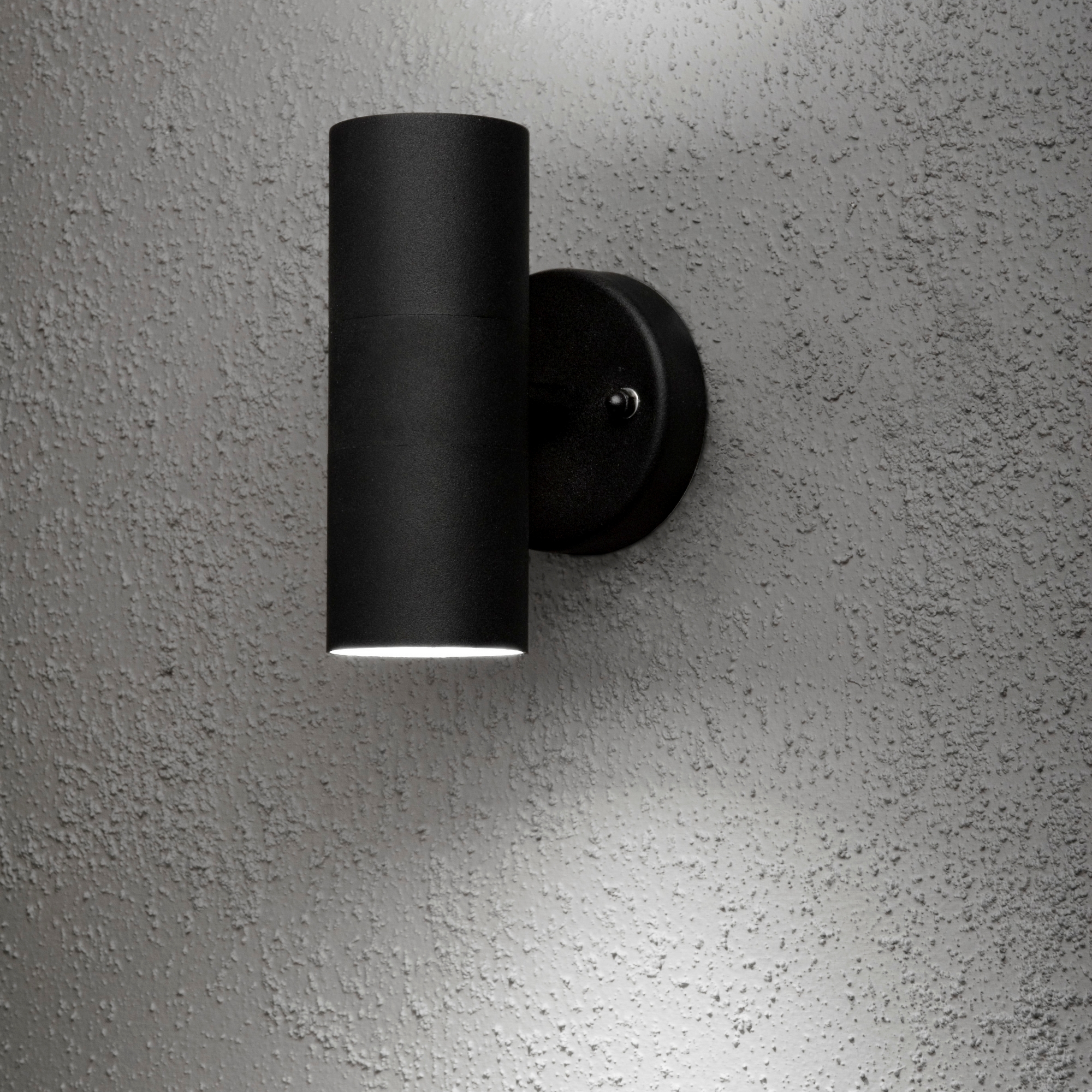 Vägglykta Gnosjö Konstsmide Modena Upp/Ned GU10 är en stilren fasadbelysning som lyser både uppåt och nedåt vilket skapar vackra skuggor på väggen. Den levereras utan ljuskälla.