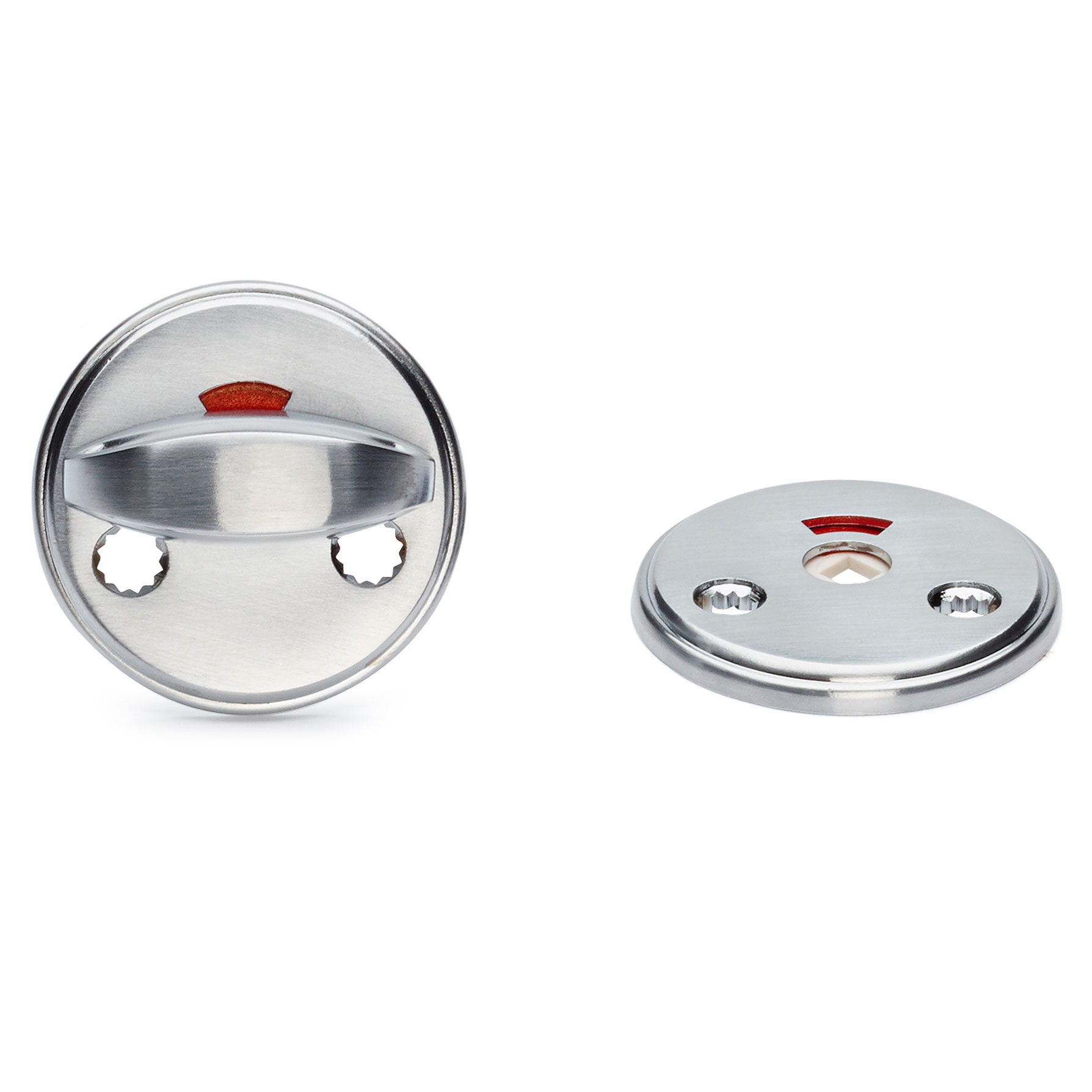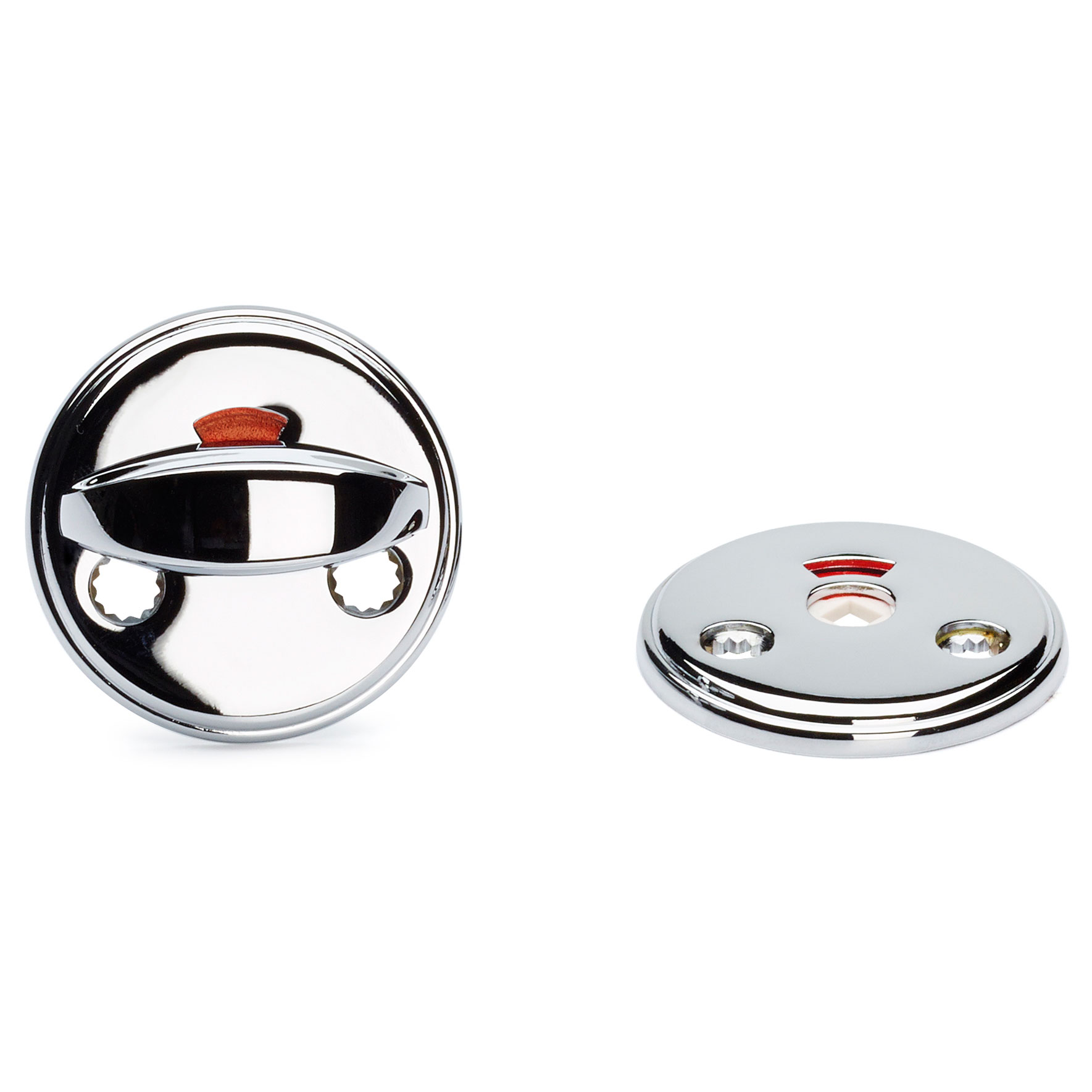 WC-beslag av zink/zamak. Levereras med skruv för genomgående fastsättning. Avsett för låshus 6414, 62014 samt 62020. Passar till dörrtjocklek 38-42 mm.