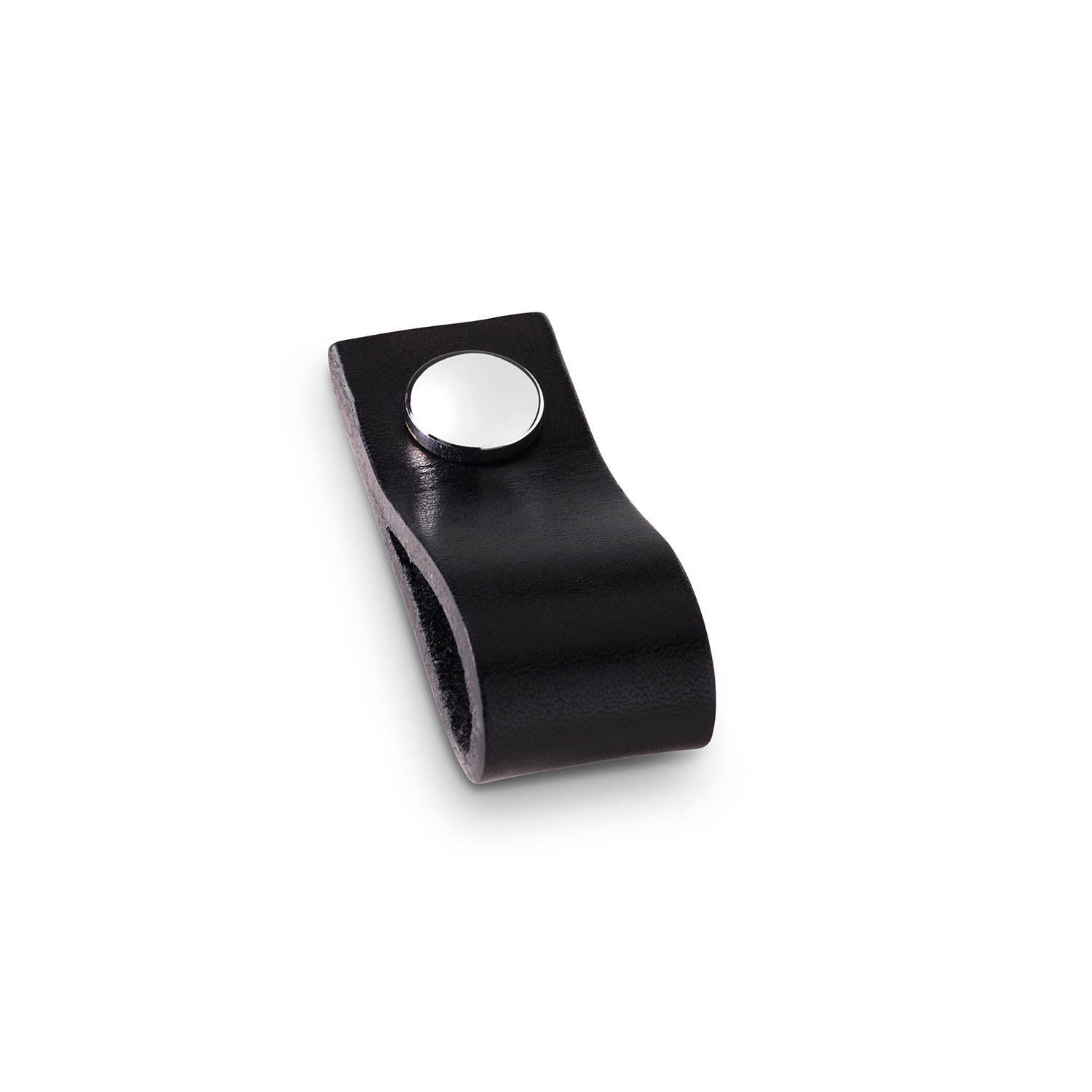 Handtag Ballingslöv Bad i Läder till dina skåp och lådor är ett dubbelvikt handtag av mjukt och lyxigt, garvat läder med ett metallfäste.