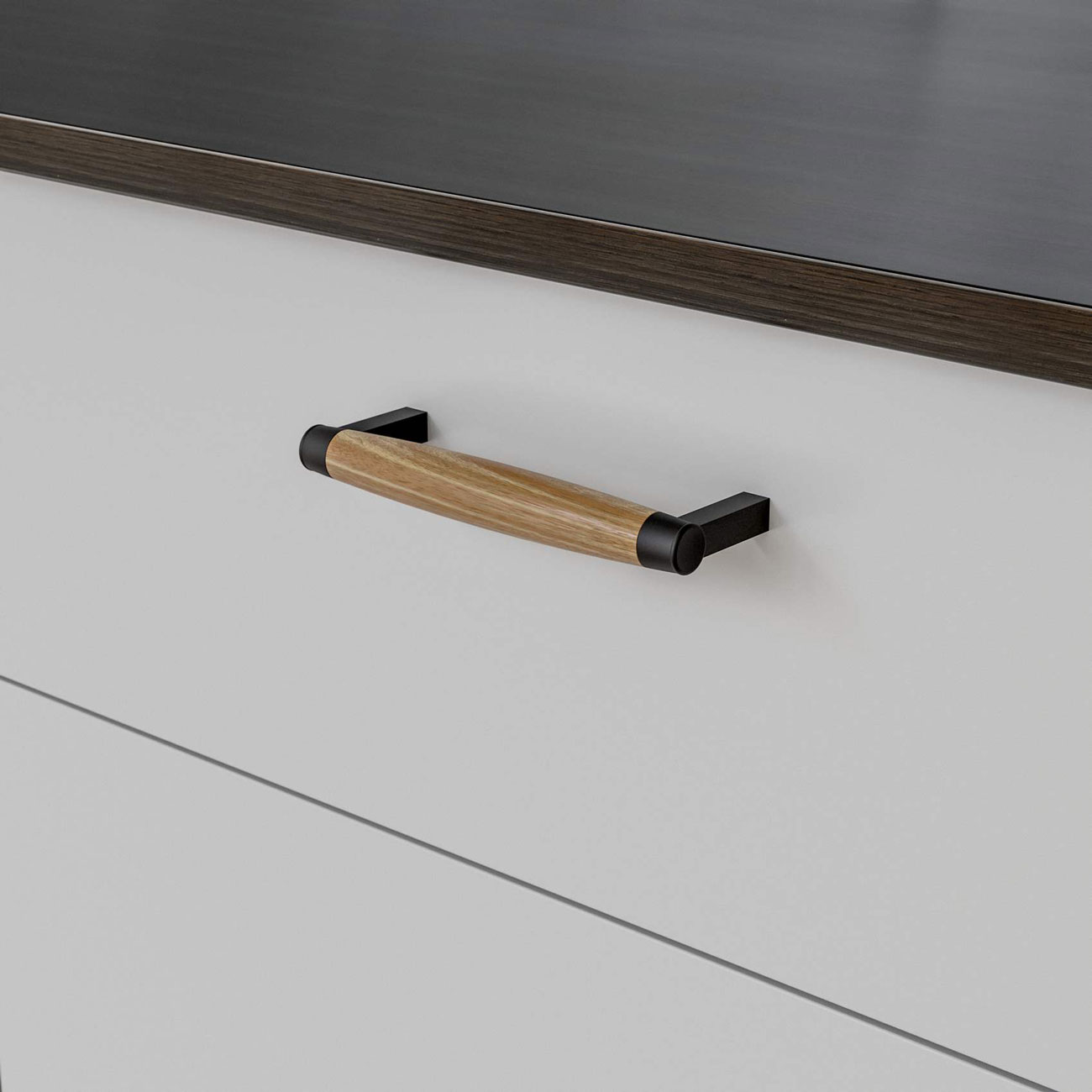 Ett handtag där fot och grepp är delbara, vilket öppnar upp för möjligheter att kombinera material och färg. Handtaget andas skandinavisk design med en exklusiv känsla.