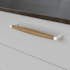 Ett handtag där fot och grepp är delbara, vilket öppnar upp för möjligheter att kombinera material och färg. Handtaget andas skandinavisk design med en exklusiv känsla.