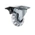 Svängbart möbelhjul av stål med platta och hjulbroms. Hjul Ø75 mm av transparent polyuretan (PUR). Fästplatta 60x60 mm. Maxbelastning 55 kg per hjul (beräknat värde, garanteras inte).
