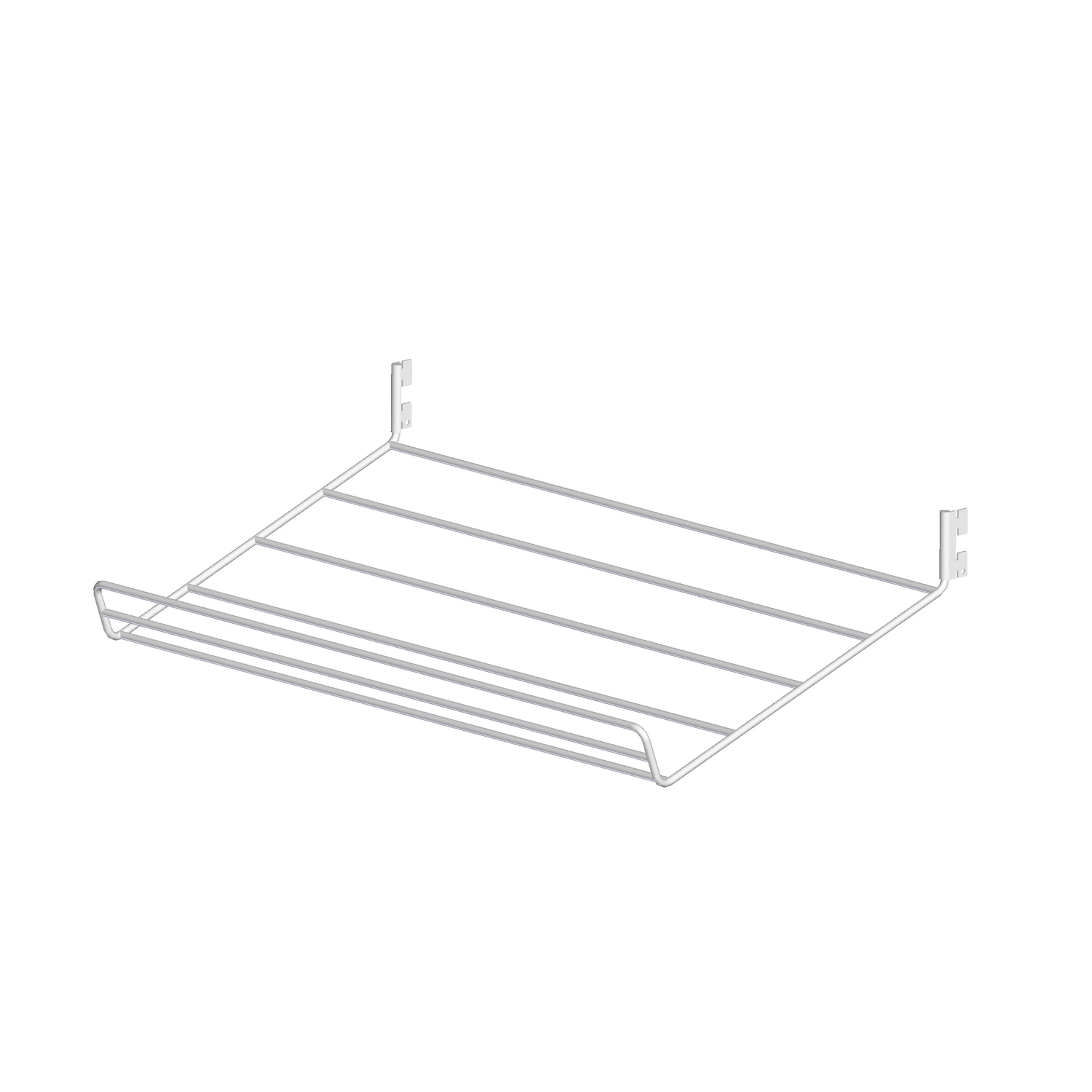 Skohylla Wide från Lundbergs är en skohylla med enkelfäste för seriemontering på skenpar eller väggfästen med centrumavstånd 600 mm.