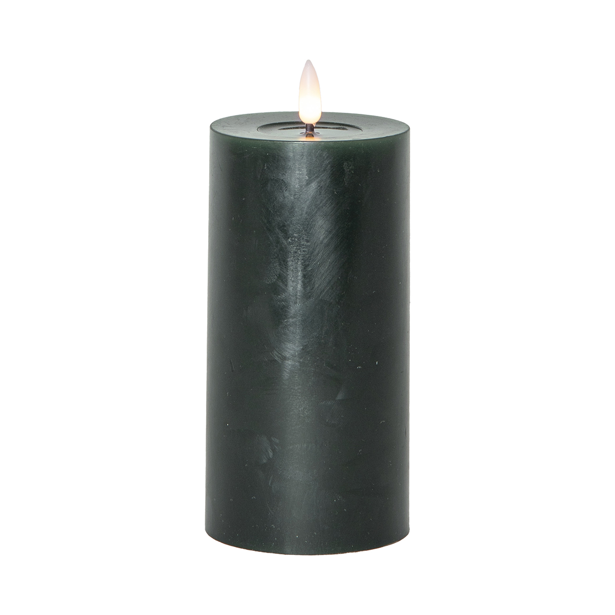 Detta stearinljus har en blank nedsänkning under lågan, denna yta ser ut som flytande vax vilket gör ljuset än mer naturtroget. Ljuset är cirka 7,5cm i diameter och höjden 15cm för vax delen och cirka 17,5cm med lågan. Detta ledljus blir en vacker dekoration, både ensam och i grupp ihop med övriga ljus från vår Flamme serie. Den har timerfunktion och när brytaren är på timerläget lyser ljuset i ca 250 dagar med en vacker realistisk låga i varmvitt. Den drivs av 2 AA batterier, dessa ingår ej. Undvik att ställa ljusen i direkt solljus då de kan smälta och missfärgas av värmen.