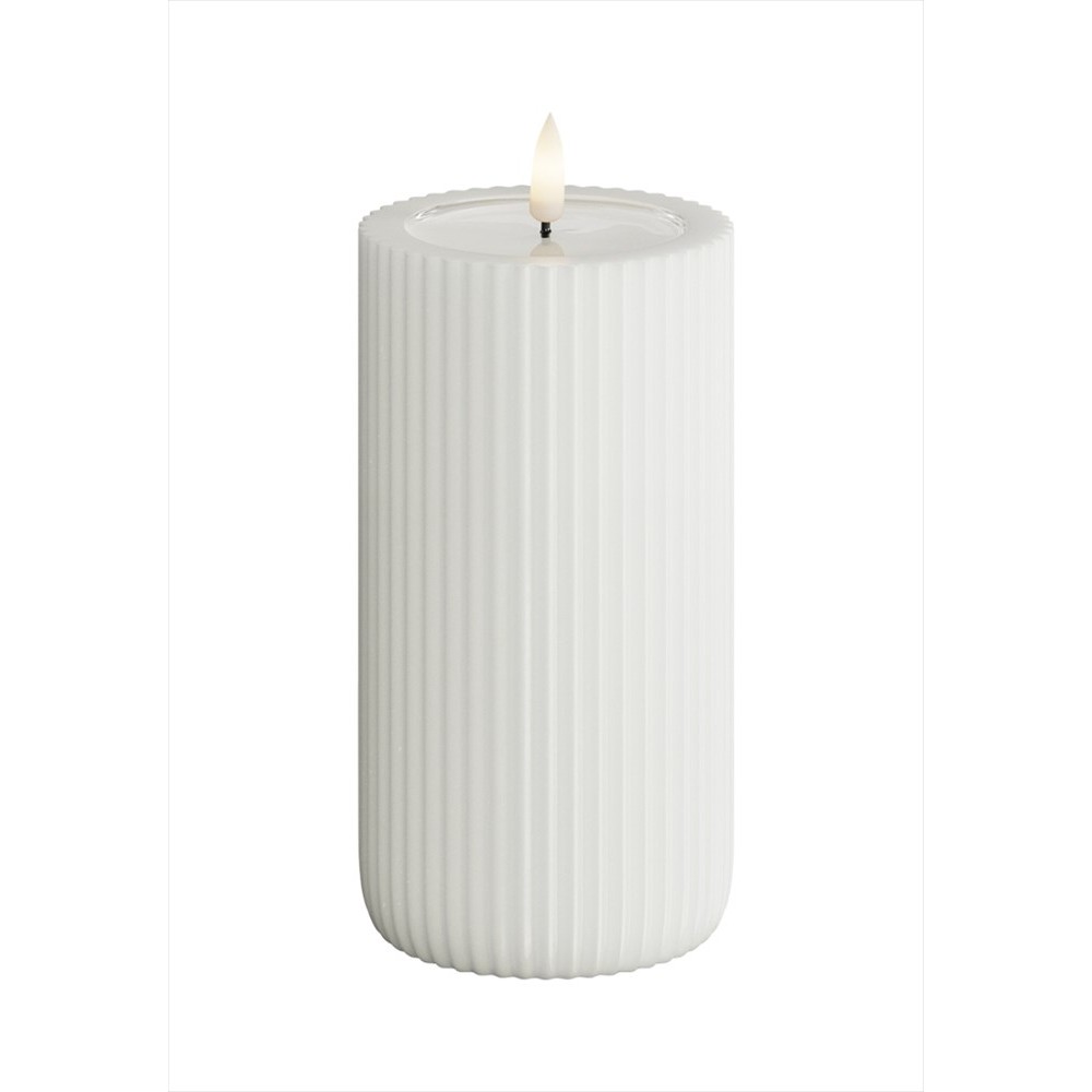 Detta eleganta LED blockljus från UNIQUE Candles ger ett mjukt och varmvitt sken, perfekt för att skapa en mysig och inbjudande atmosfär i ditt hem. Med sin stilrena räfflade design och klassiska creamfärg passar det utmärkt i alla rum, både på bordet, hyllan eller som en del av din dekoration. Ljuset ger en verklighetstrogen flammande effekt, vilket ger både en säker och vacker ljuskälla.