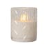 Ljuset är cirka 10 x 12,5cm. Detta batteriljus blir en vacker dekoration, både ensam och i grupp ihop med övriga ljus från vår Flamme serie. Det har timerfunktion och när brytaren är på timerläget lyser ljuset i ca 30 dagar med en vacker realistisk låga i varmvitt. Det drivs av 2 AA batterier, dessa ingår ej. Undvik att ställa ljusen i direkt solljus då de kan smälta och missfärgas av värmen.