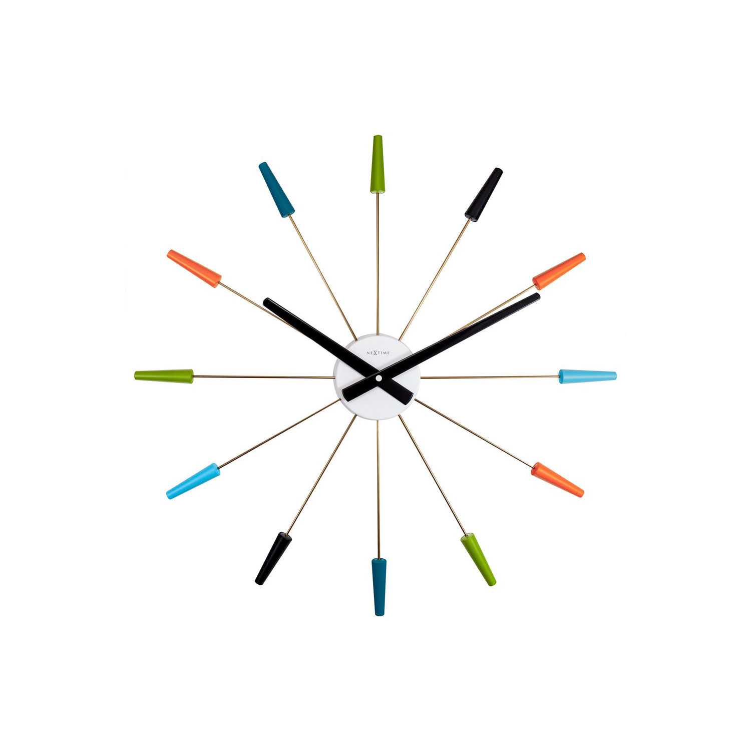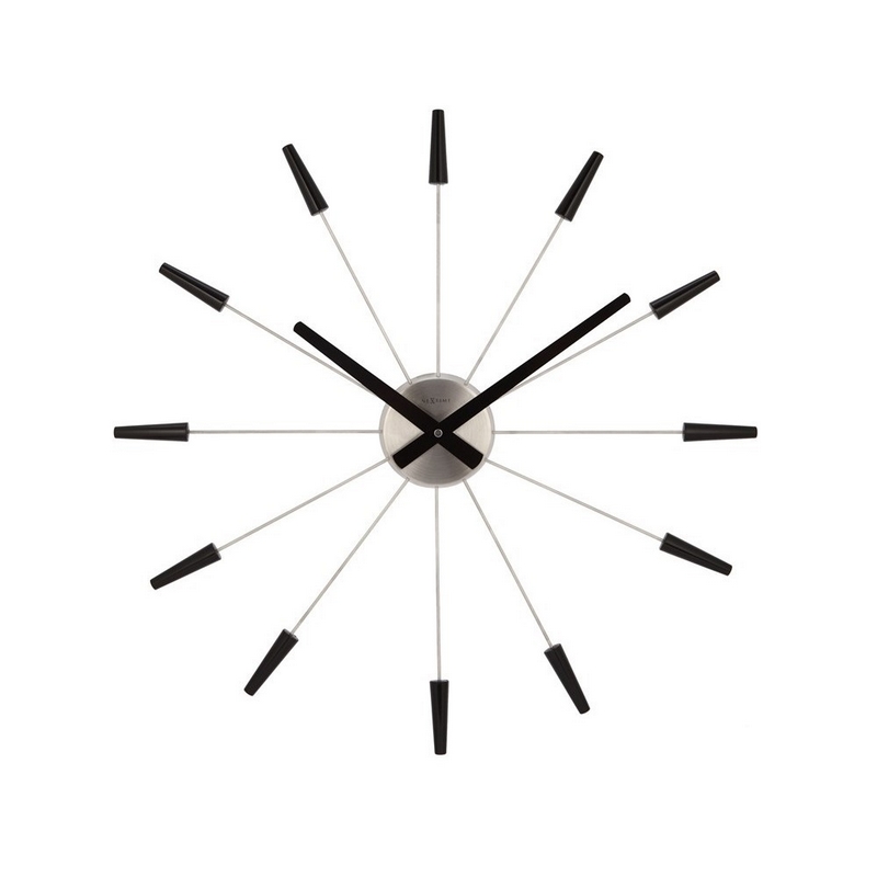 Väggklocka Plug Inn 58 från NeXtime är en trendig väggklocka med svarta pinnar med guldavslut som markerar varje timme. Urverket är tystgående och klockan drivs av ett AA-batteri (medföljer inte).