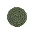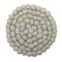 Grytunderlägg i ull med tovade bollar, för att skydda bordet mot varma kärl. 20cm i diameter.