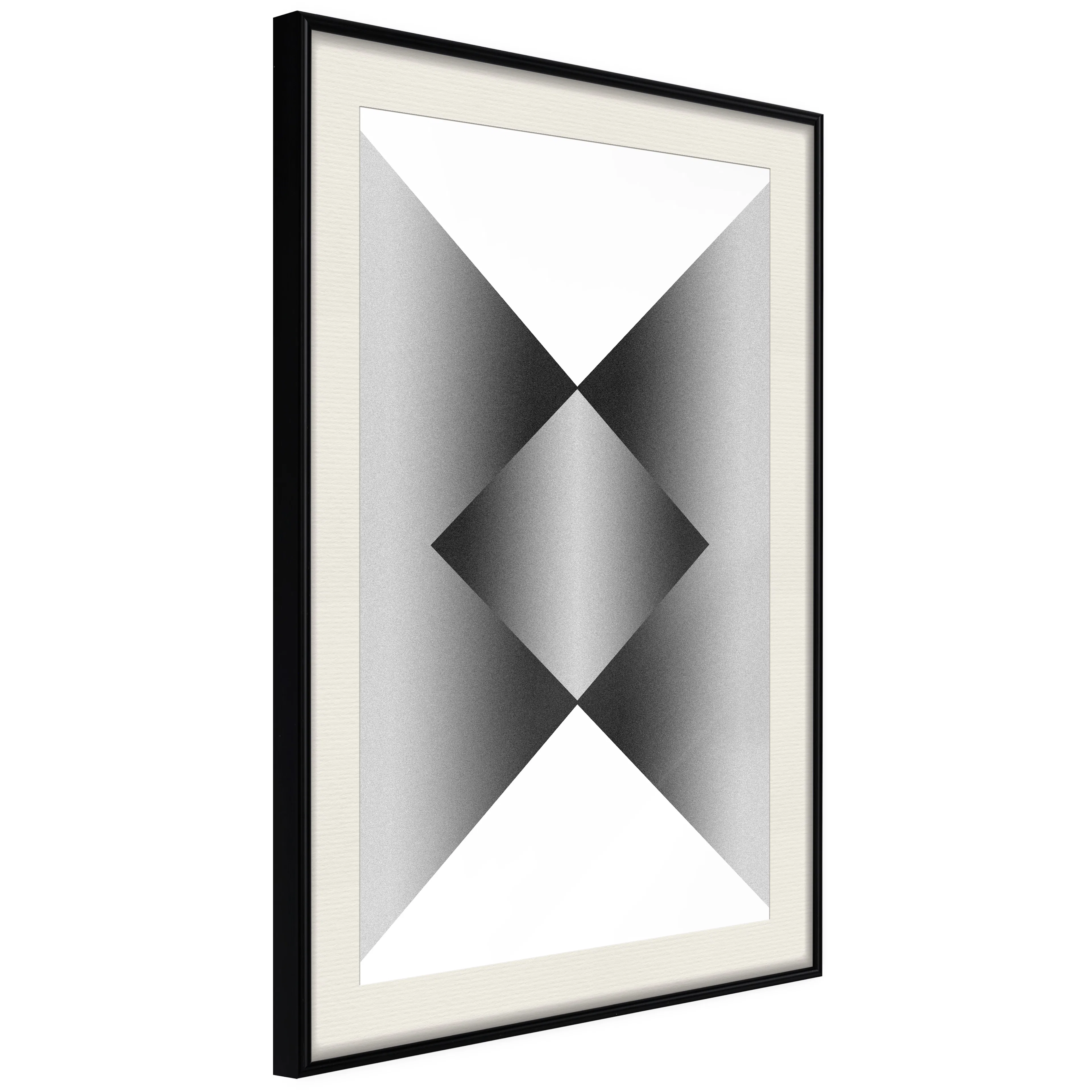 Passepartouten i écru betonar färgern på affischen och skapar en extra kontrast mellan grafiken, ramen och väggen. Dessutom ger den ramen ett svagt tredimensionellt intryck och fungerar även som ett skyddslager som ytterligare skyddar afischen. Affischen är säkrad med akrylglas och en hänganordning finns på ramens baksida.