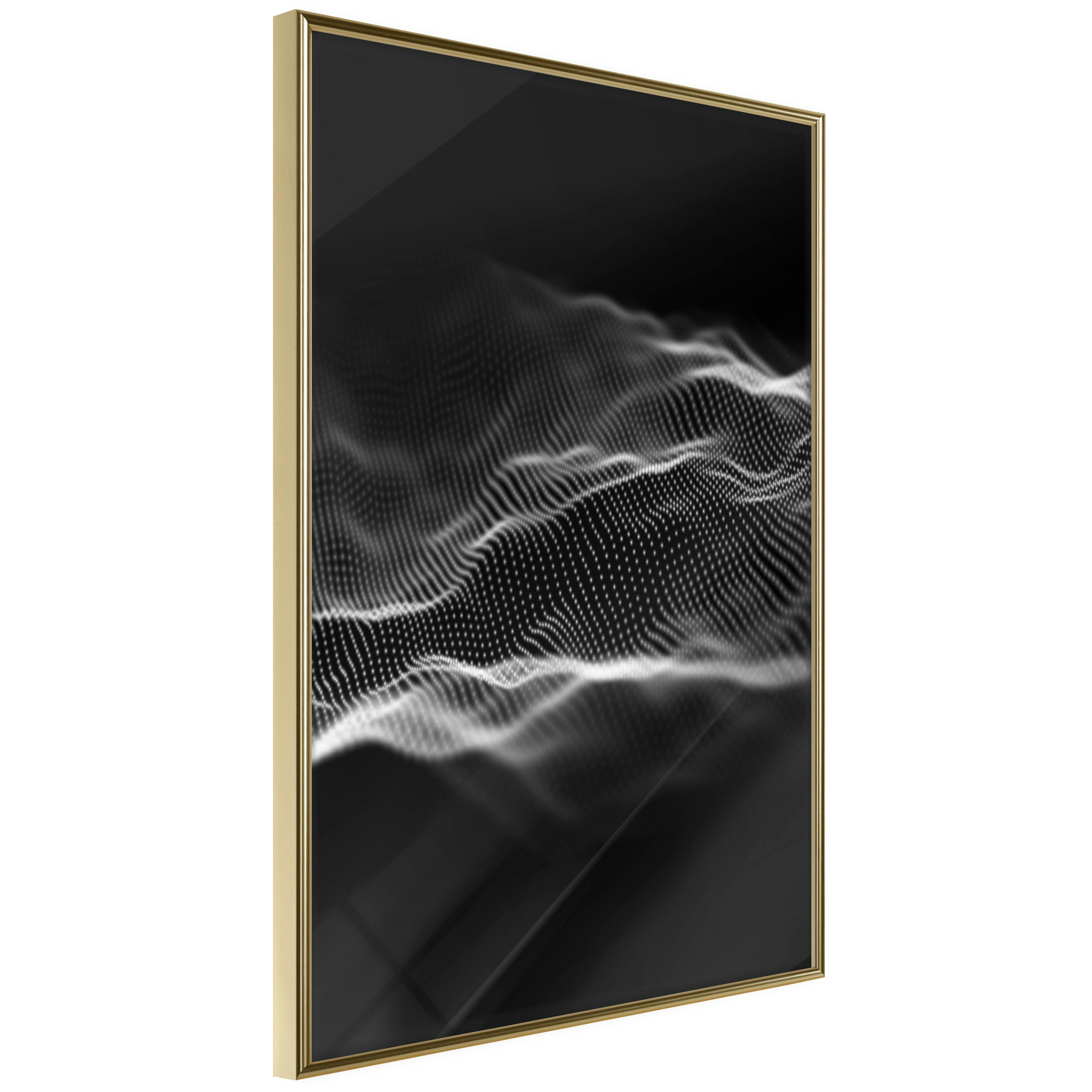 Affischen är inramad i en minimalistisk, lätt ram som gör den mer synlig mot väggen. Affischen är säkrad med akrylglas och en hänganordning finns på ramens baksida.