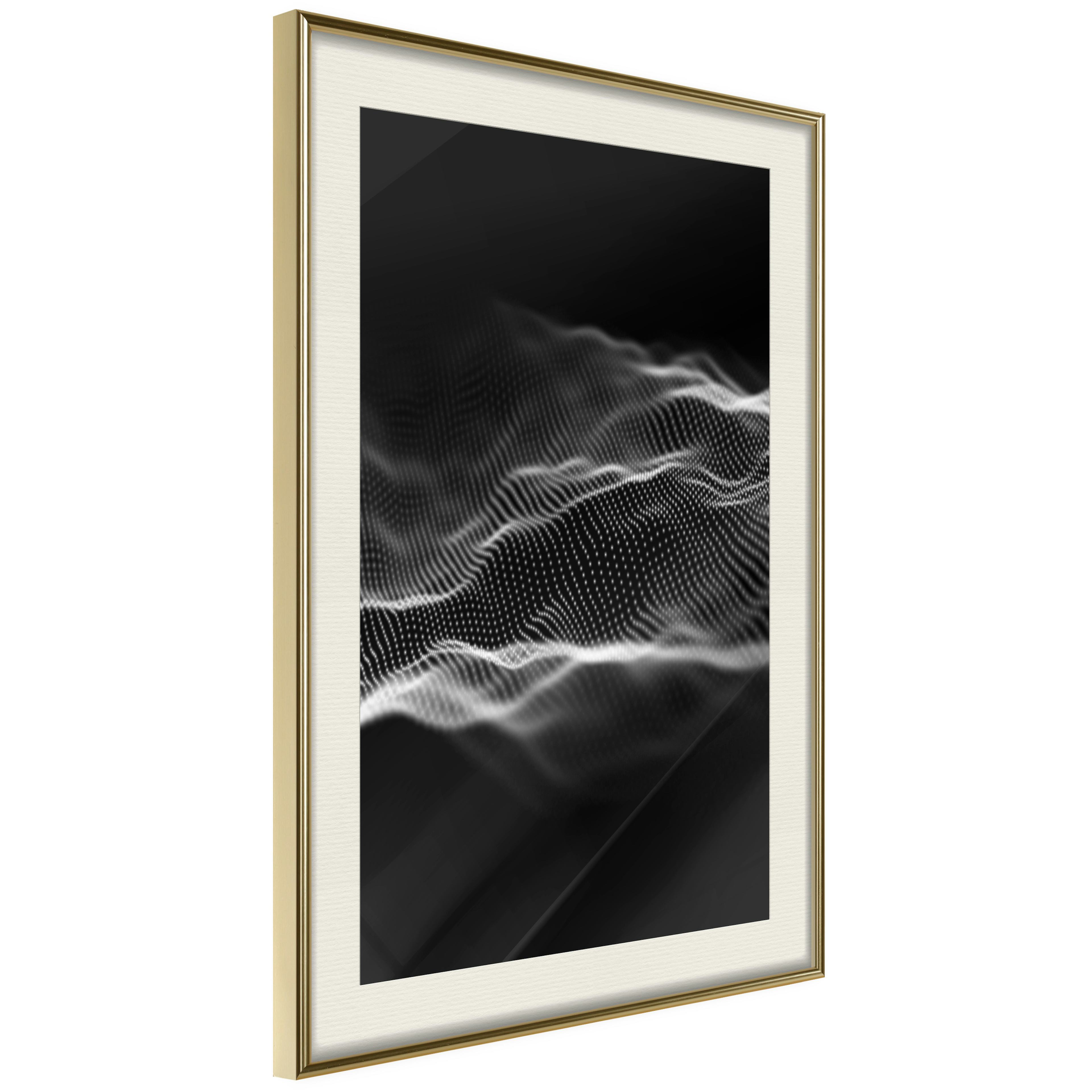 Passepartouten i écru betonar färgern på affischen och skapar en extra kontrast mellan grafiken, ramen och väggen. Dessutom ger den ramen ett svagt tredimensionellt intryck och fungerar även som ett skyddslager som ytterligare skyddar afischen. Affischen är säkrad med akrylglas och en hänganordning finns på ramens baksida.