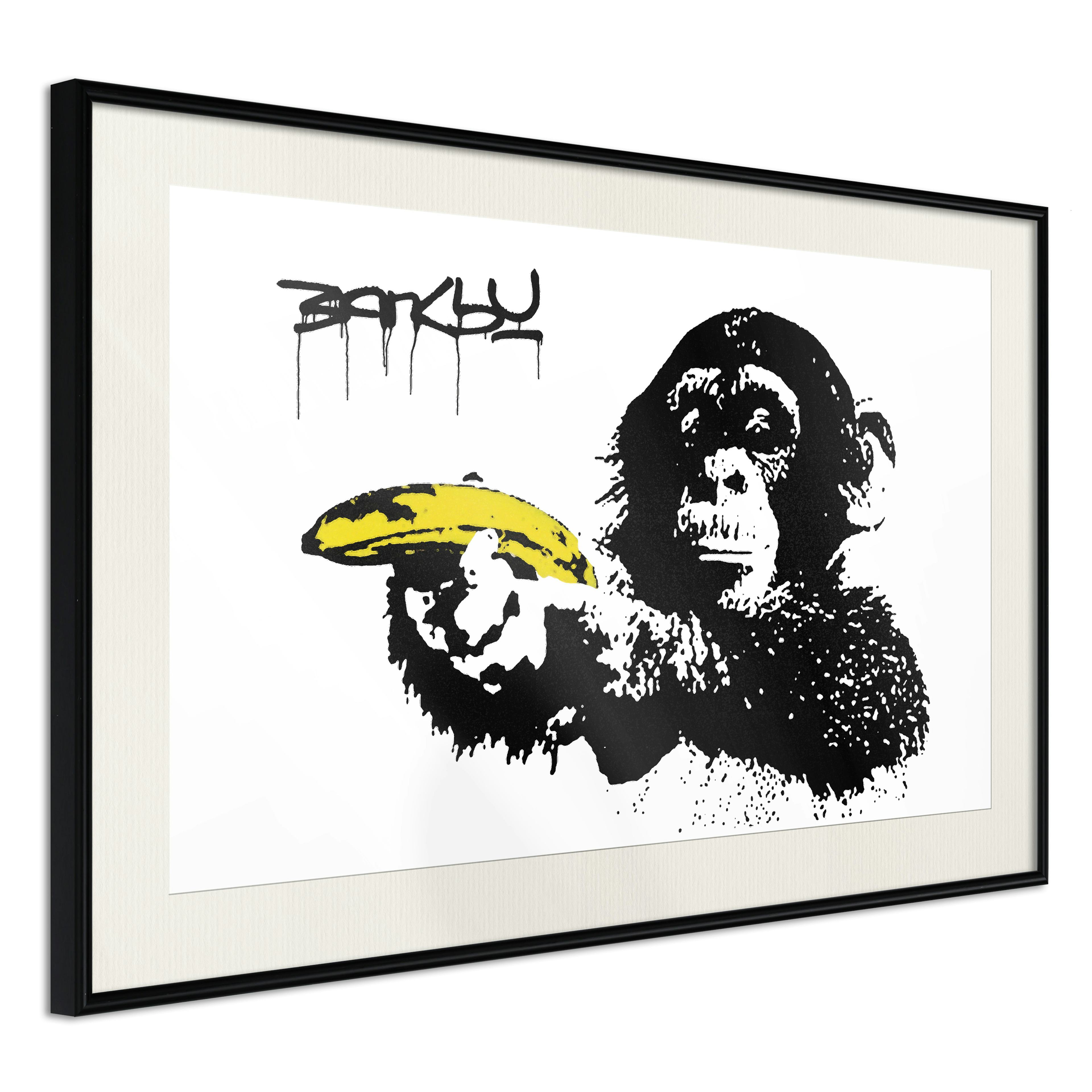 Poster ArtgeistAffisch Banksy Monkey with BananaSvart ram med passepartout, 45x30 cm