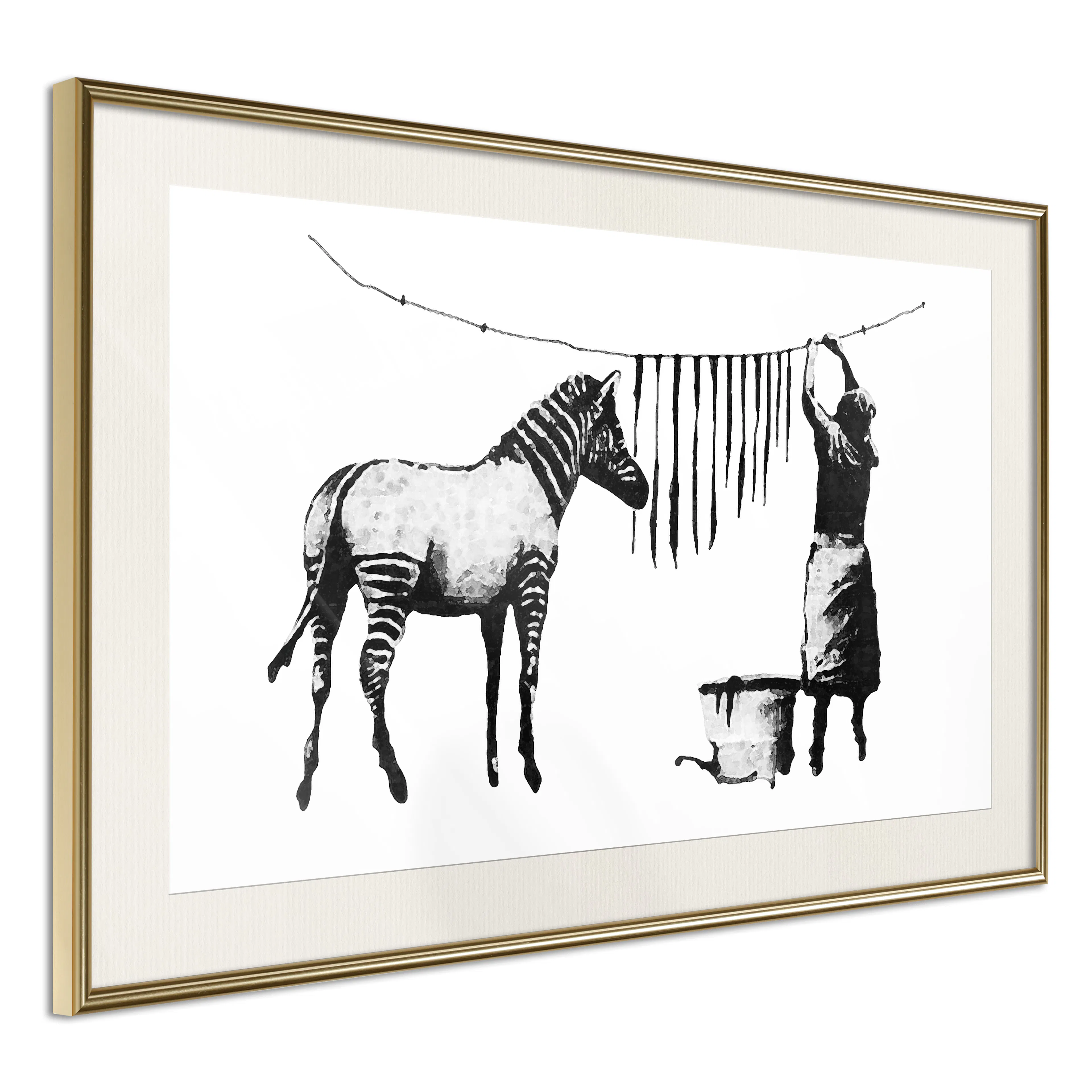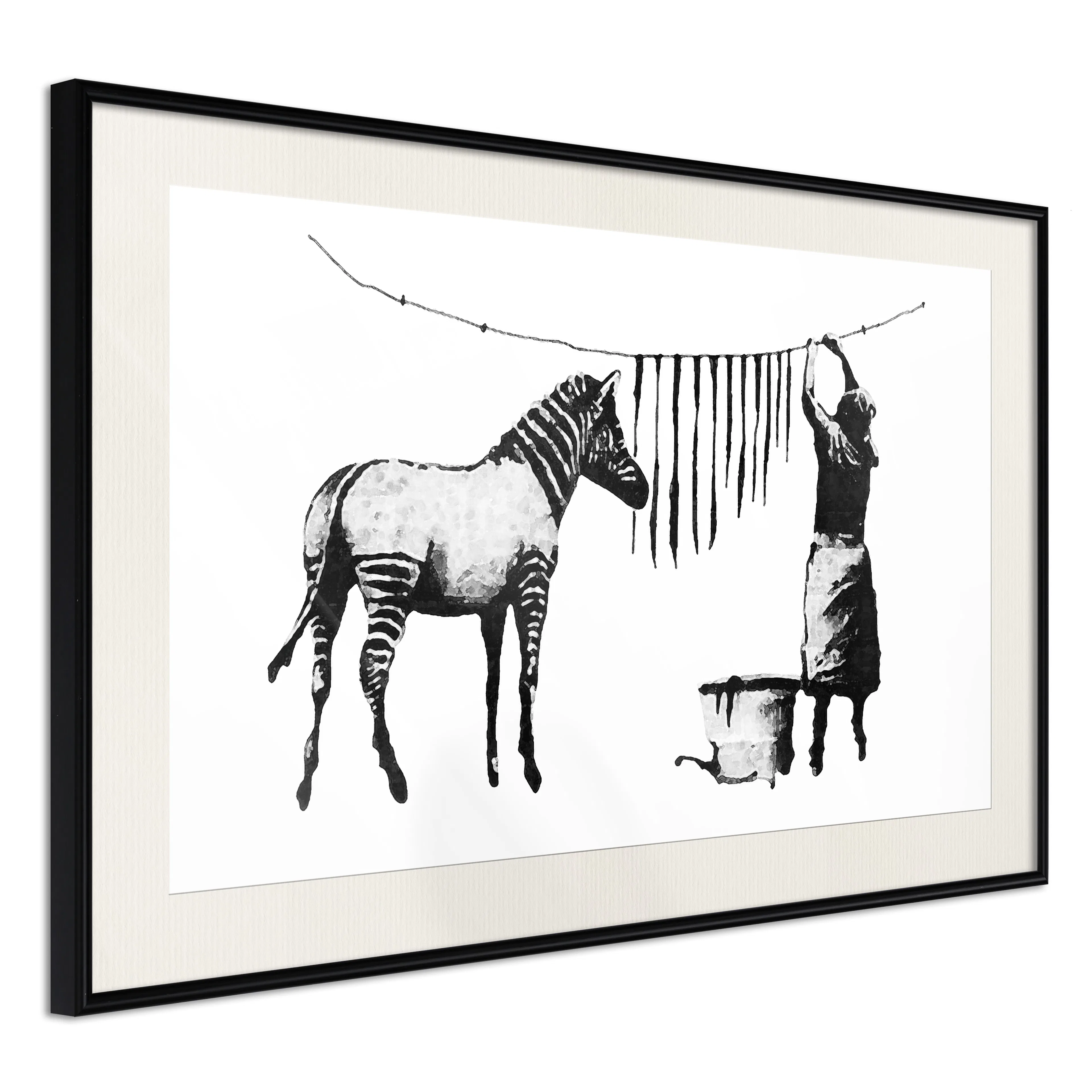 Poster Artgeist Affisch Banksy Washing ZebraSvart ram, 60x40 cm
